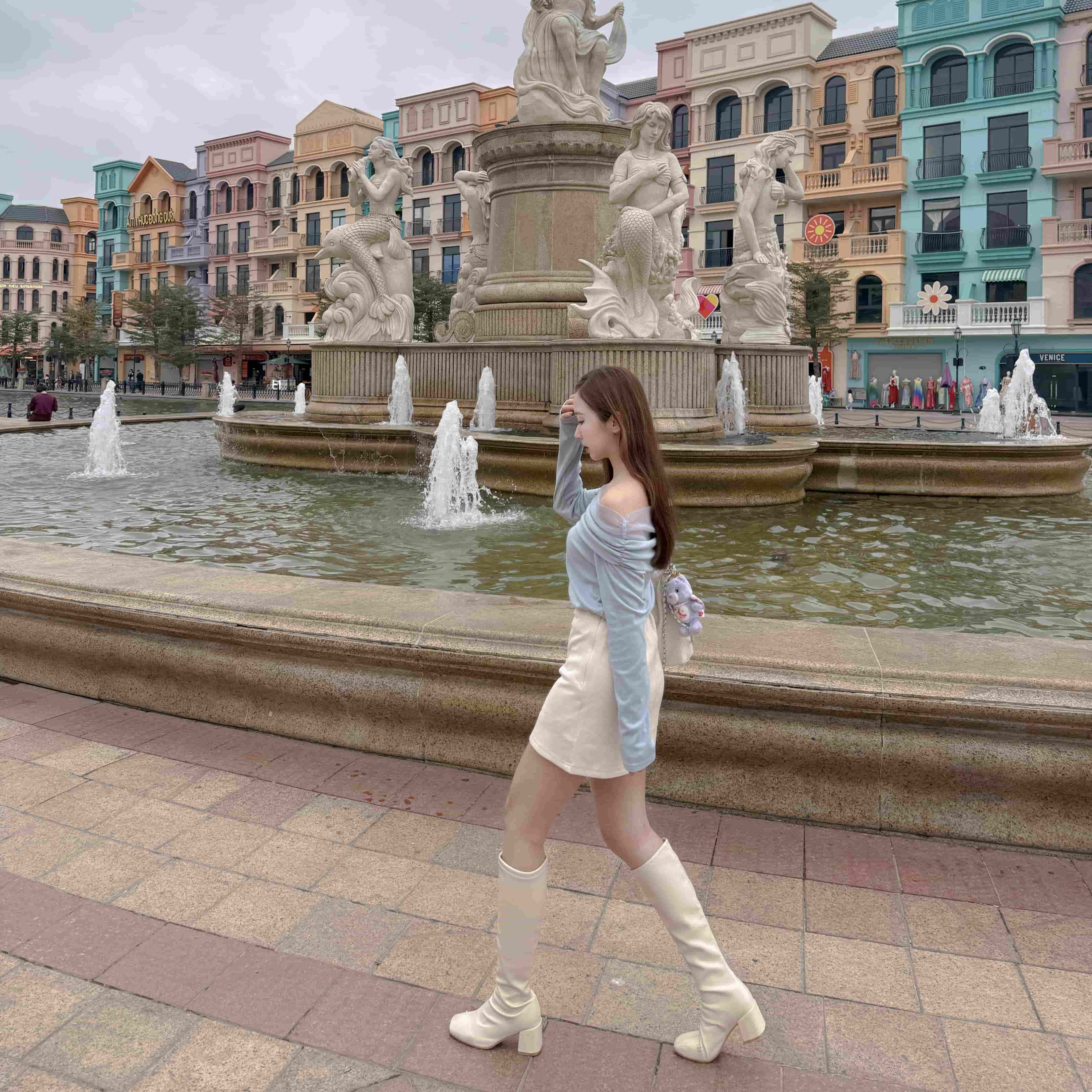 一字領毛毛繞頸造型上衣