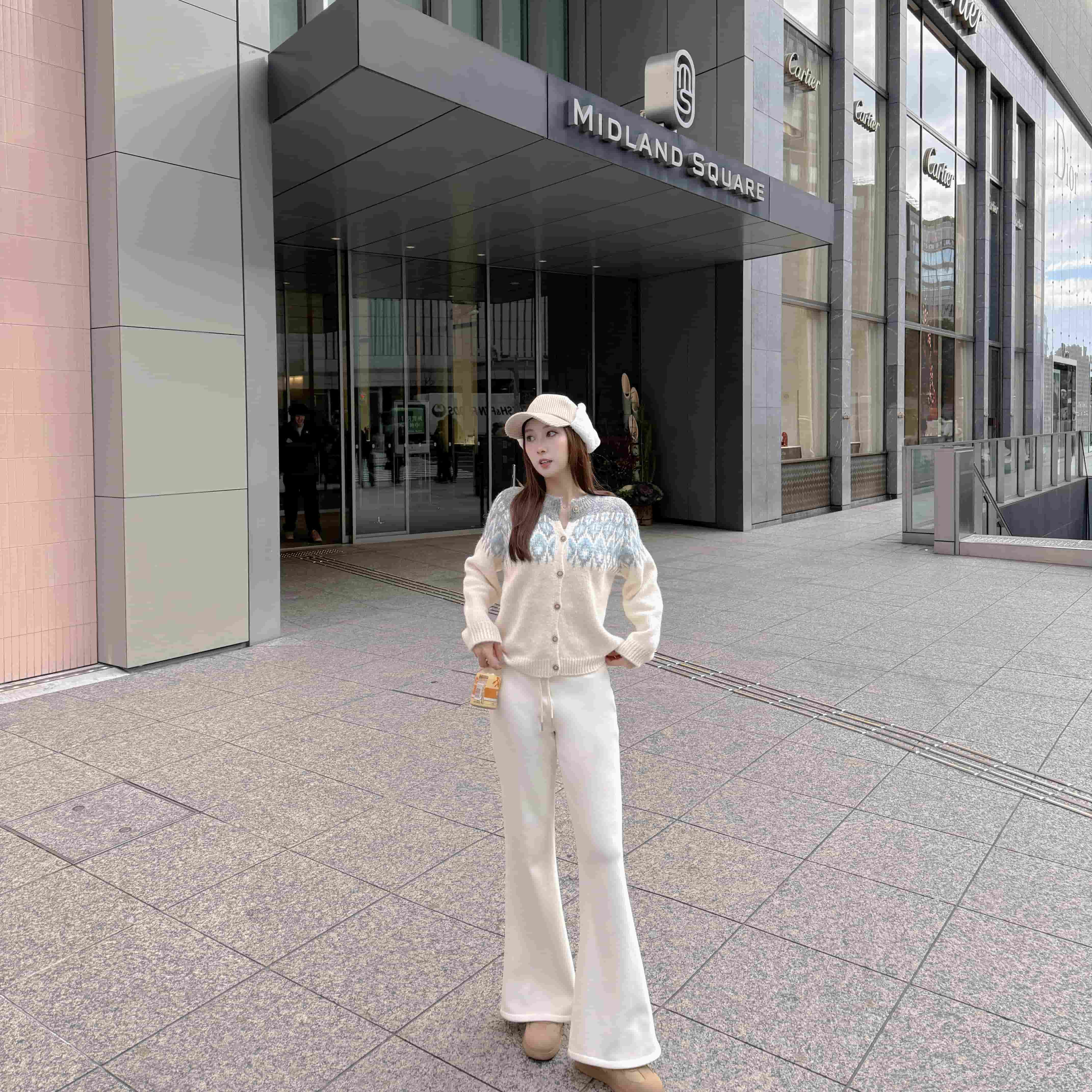 首頁所有商品/All Products下著/BOTTOM 北海道初雪-顯瘦保暖刷毛微喇叭白褲