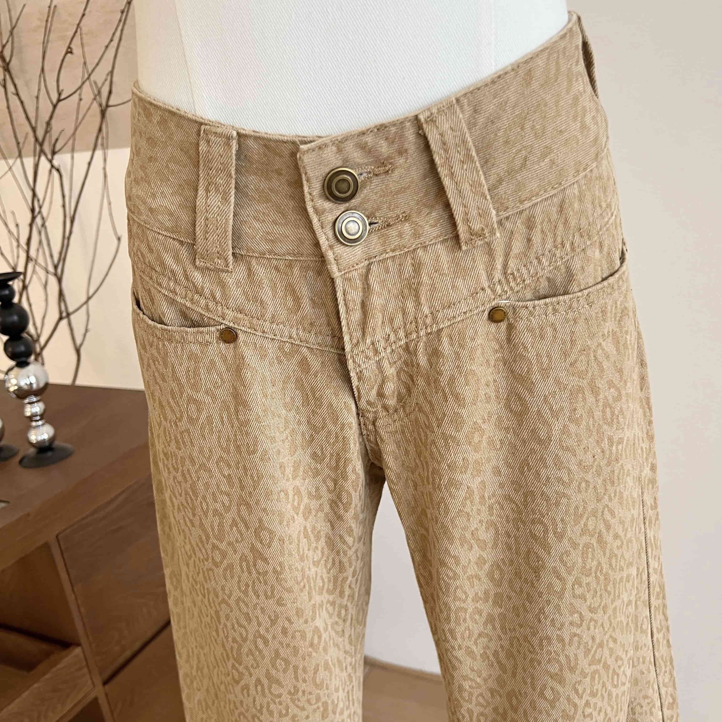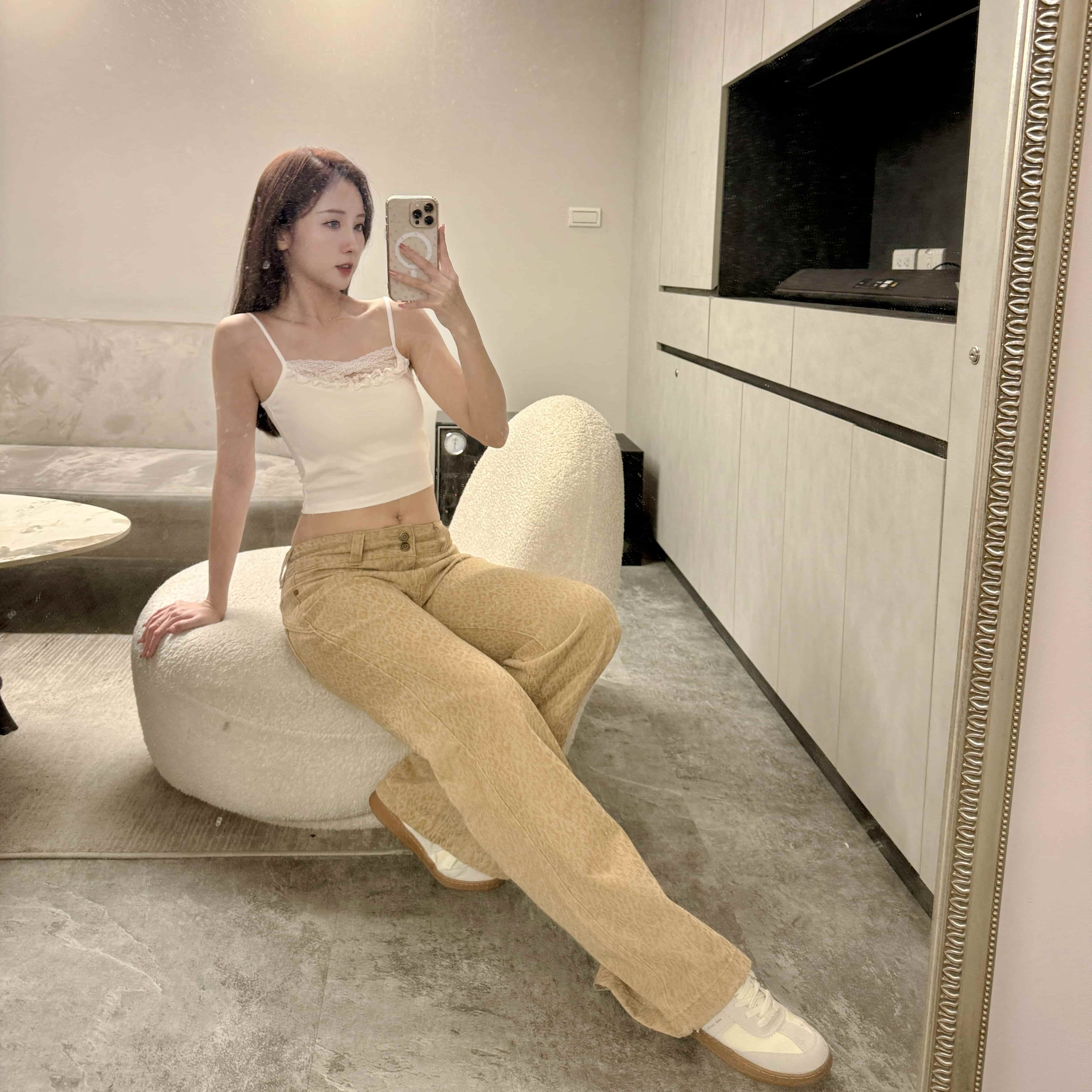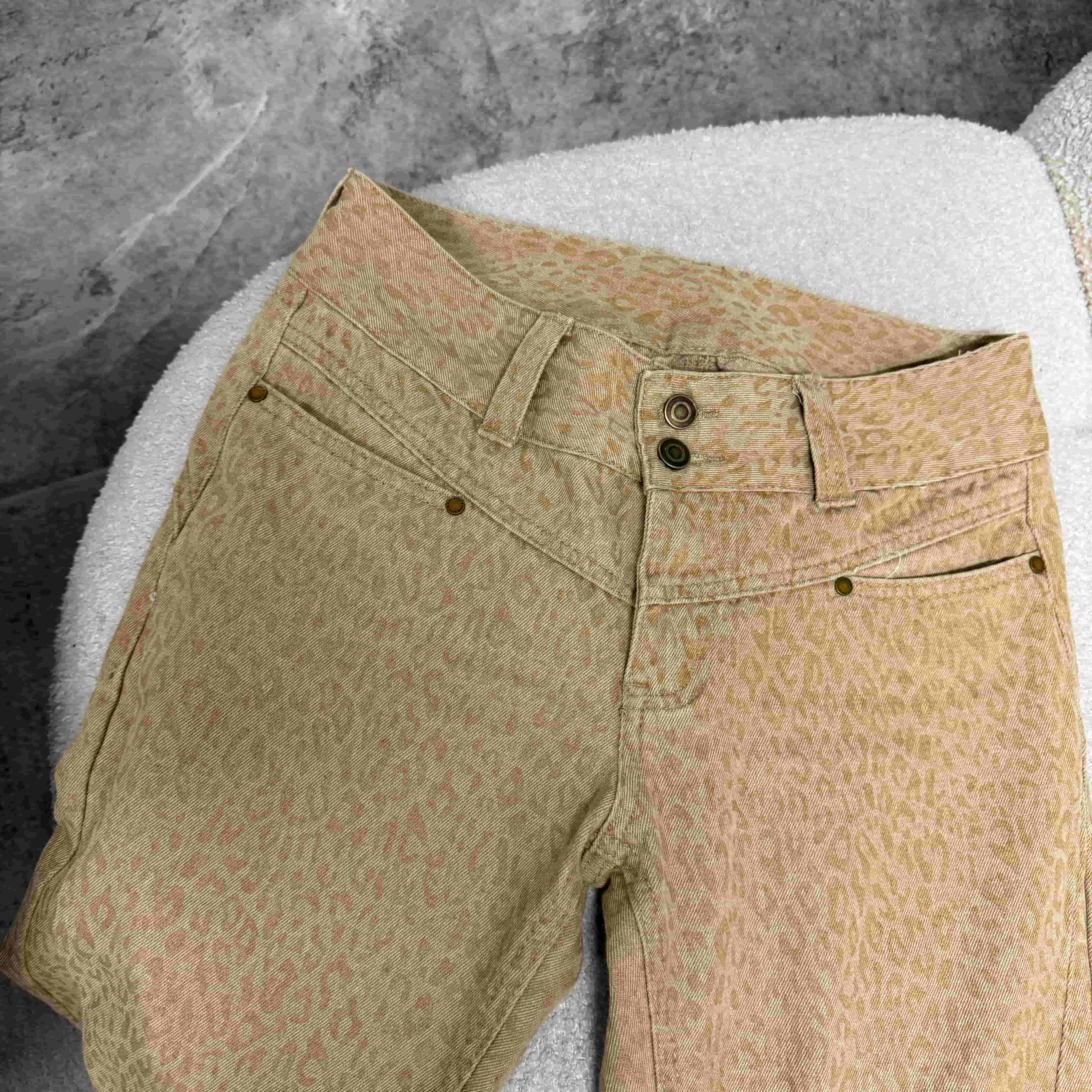 時髦精低腰豹紋淺卡其微喇叭褲