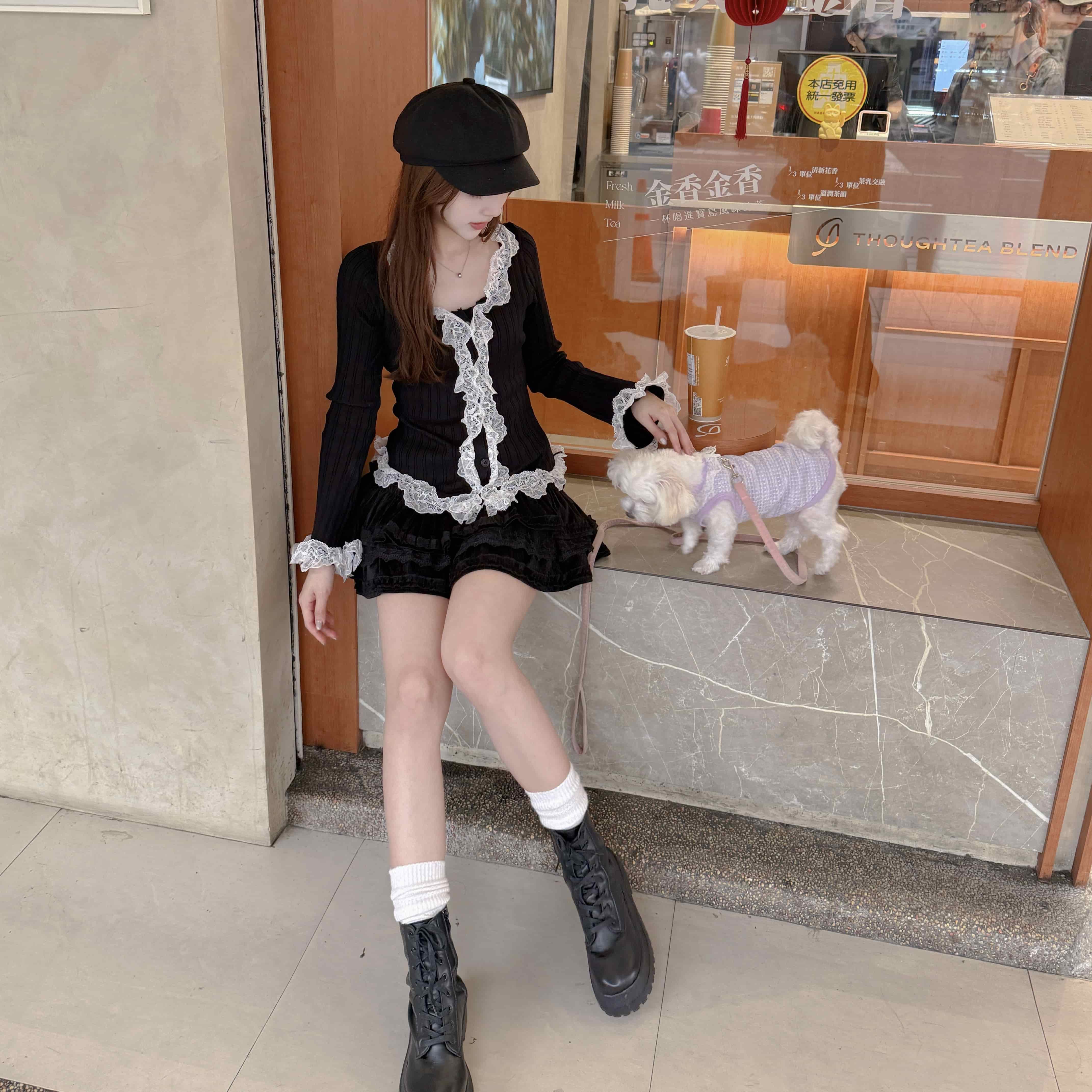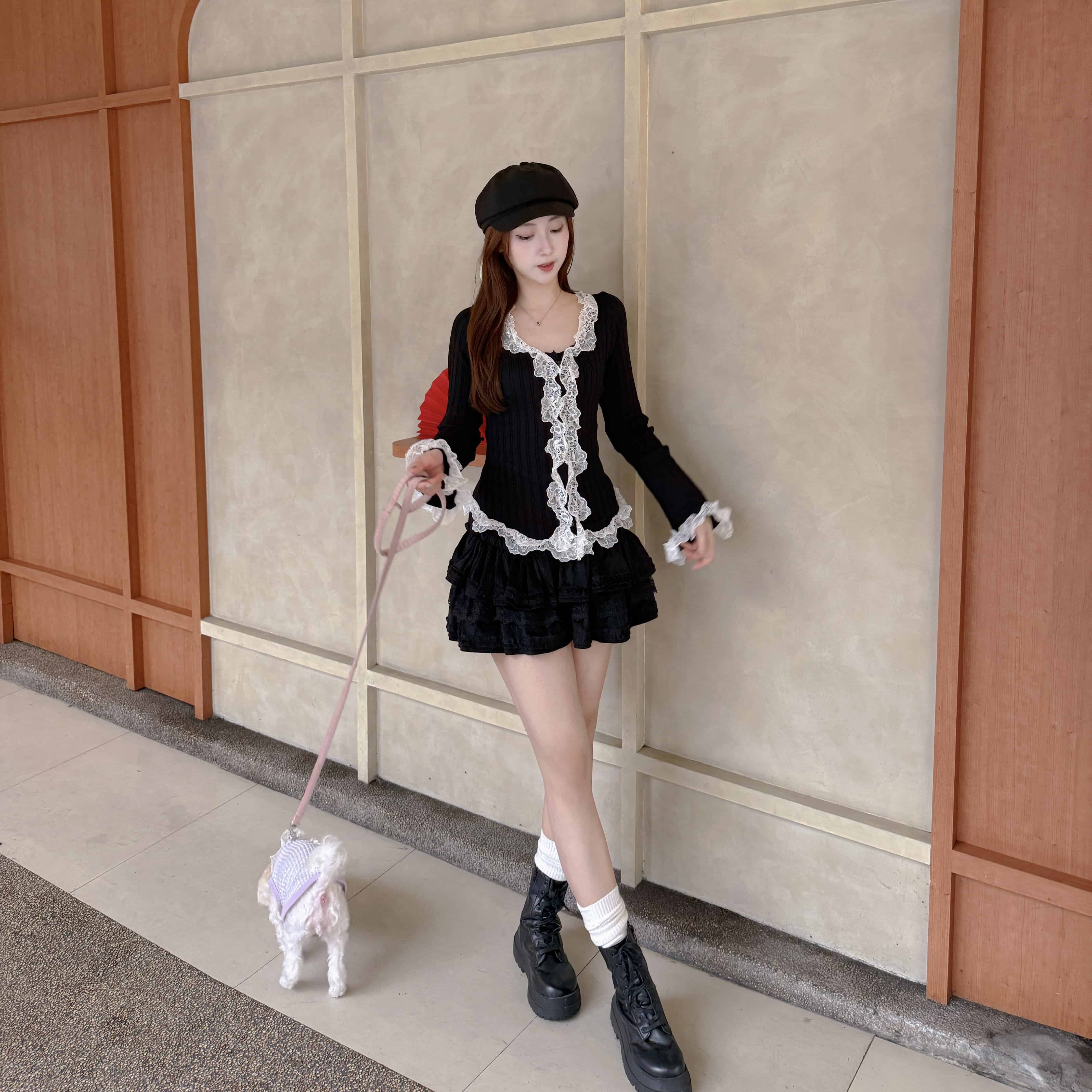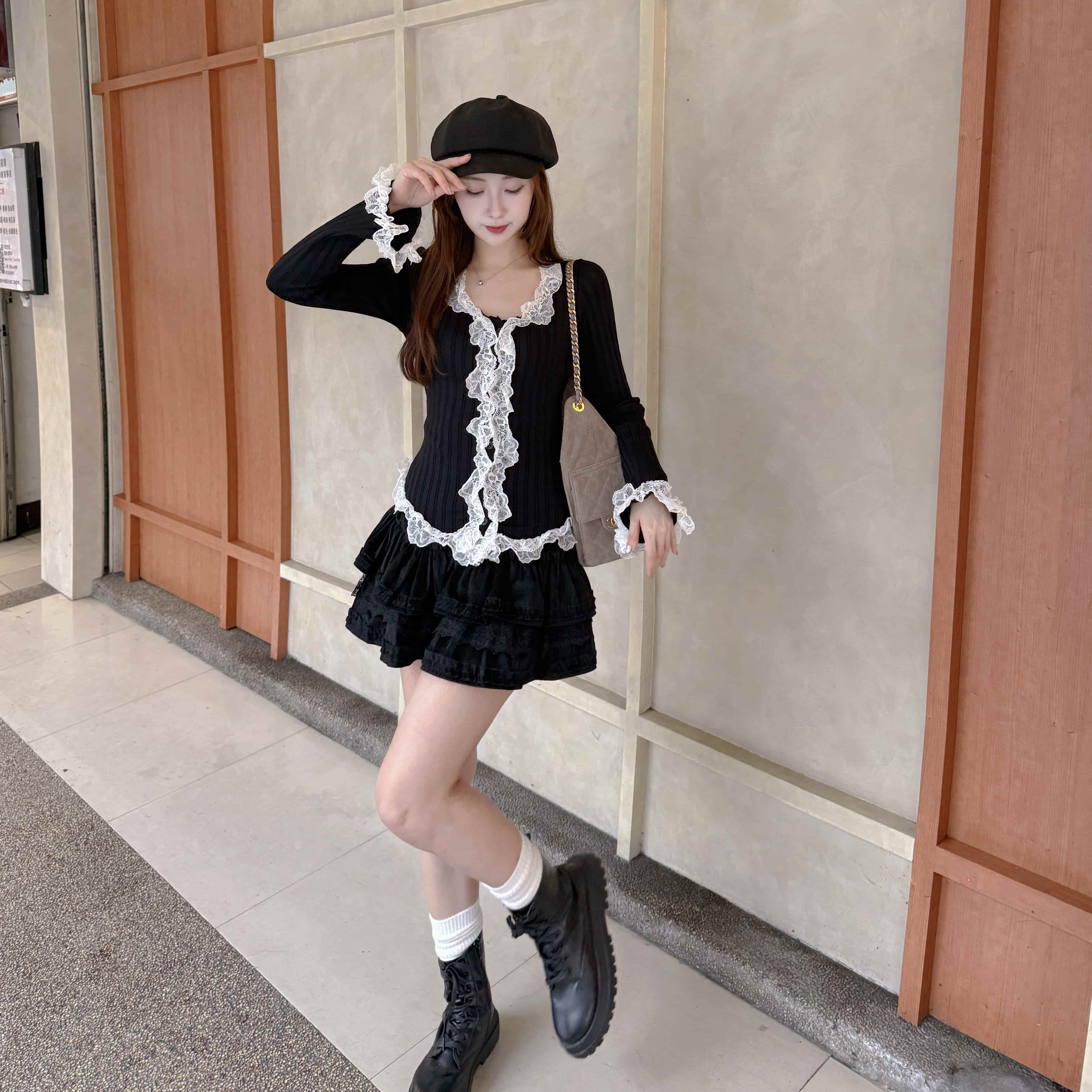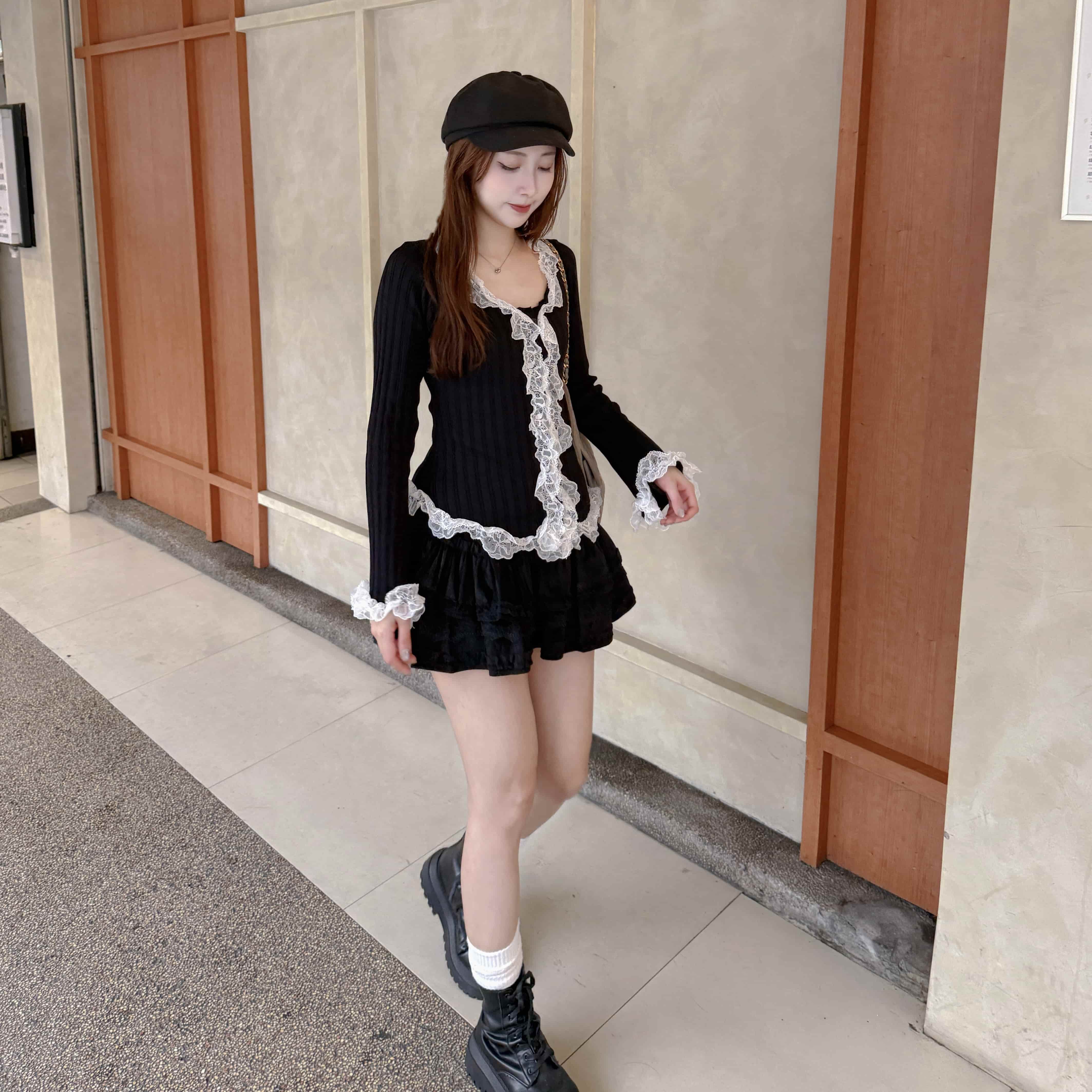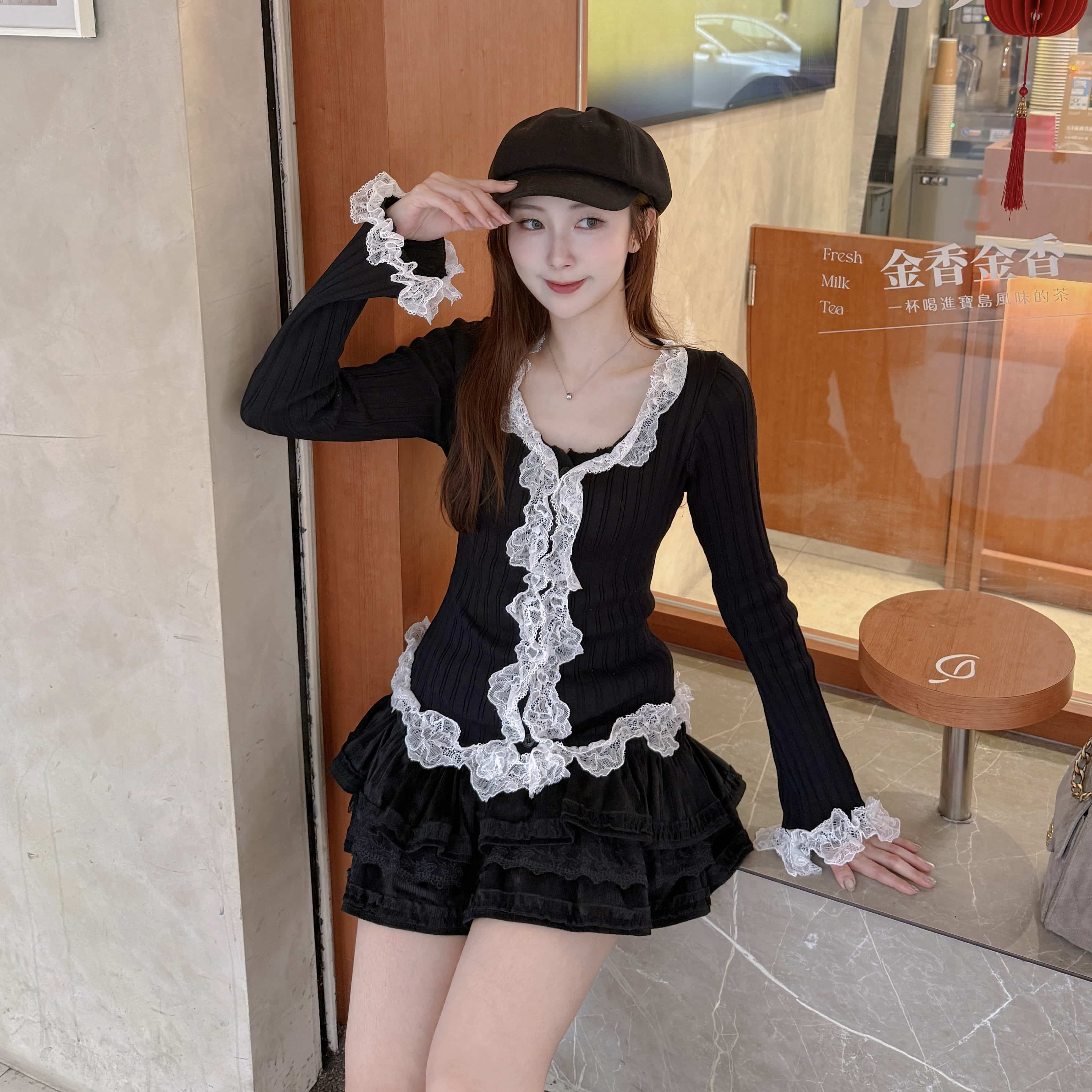 慵懶甜感-蕾絲拼接蛋糕短裙