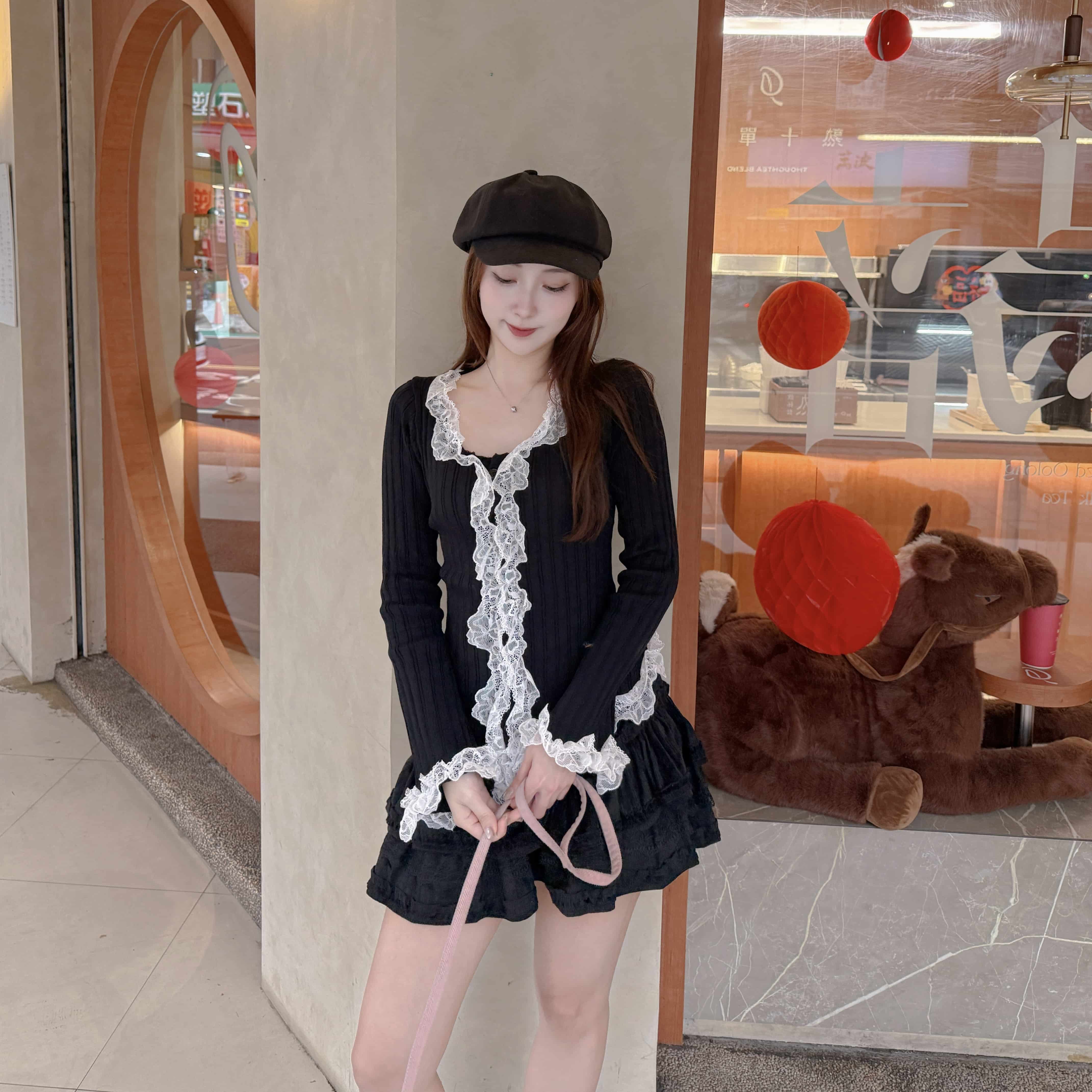 荷葉蕾絲拼接針織真的美呆