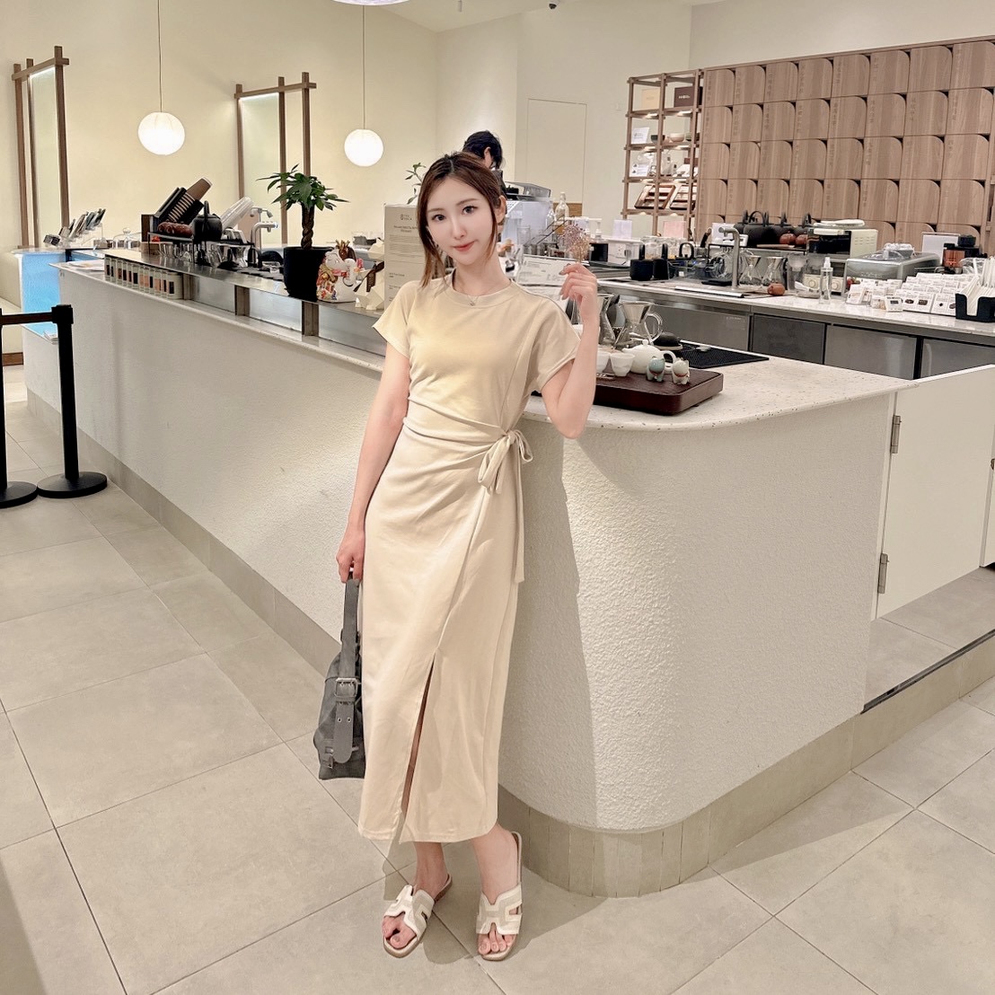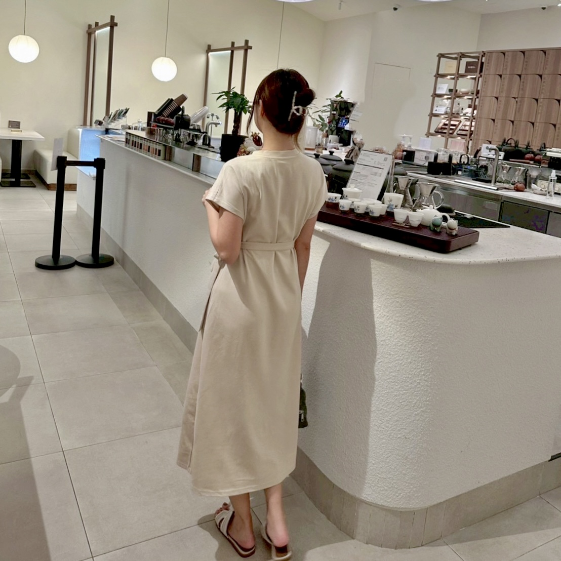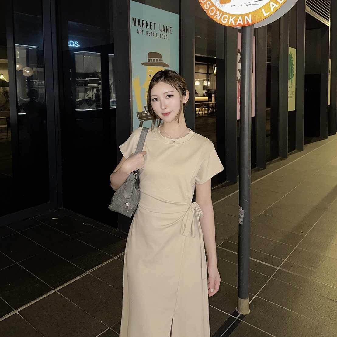 首頁所有商品/All Products洋裝/DRESS 氣質圓領綁帶短袖連身裙
