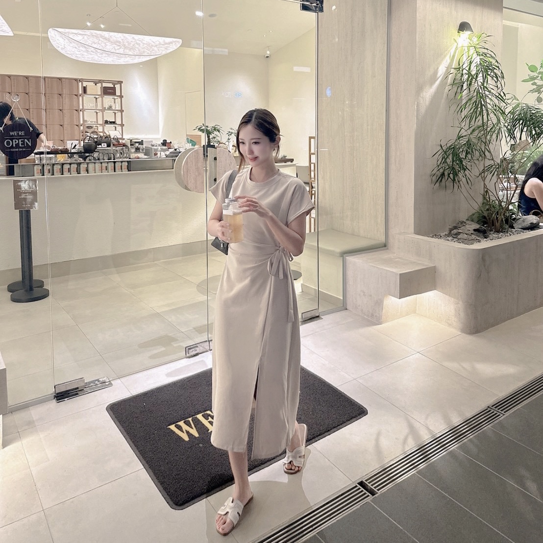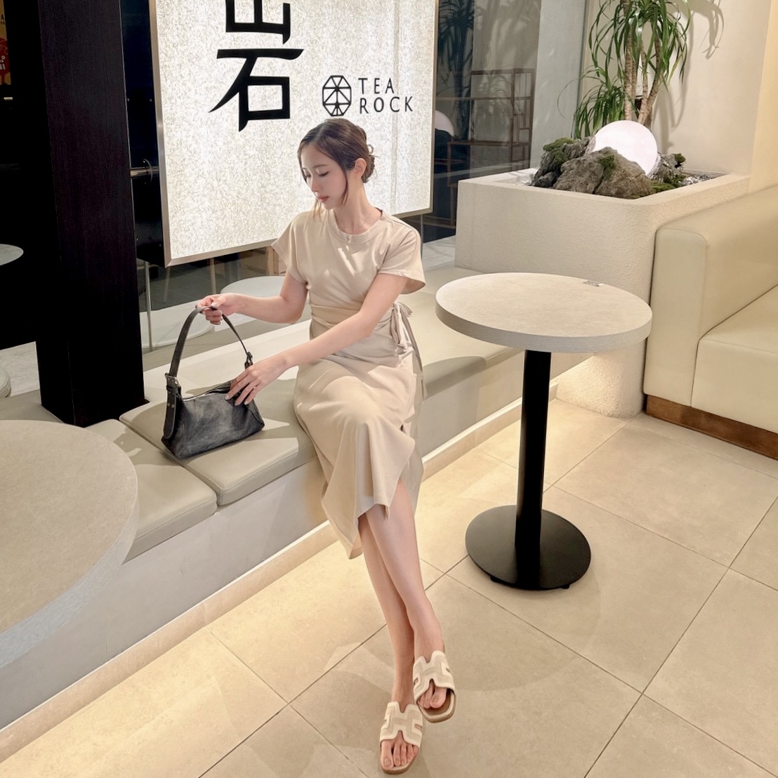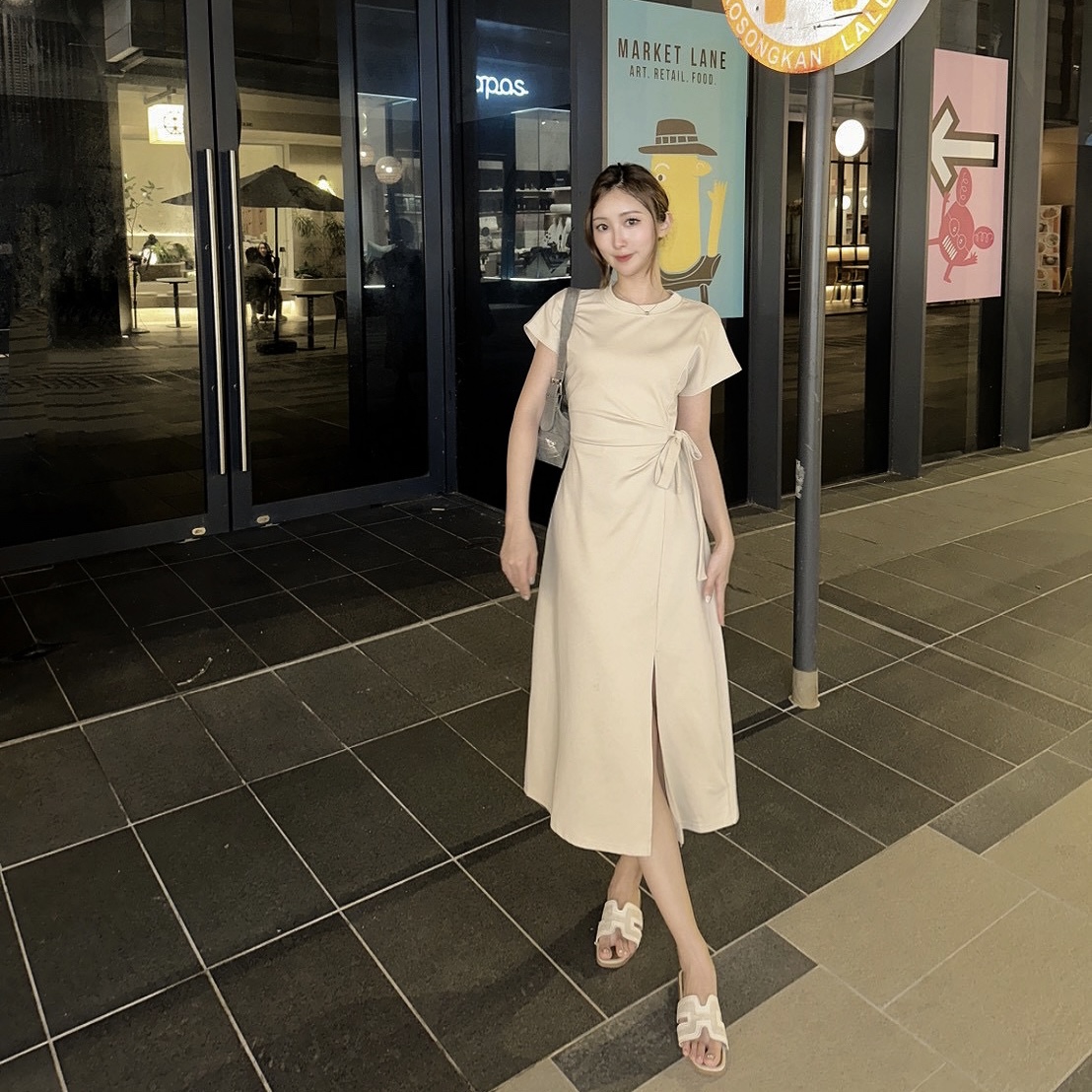 首頁所有商品/All Products洋裝/DRESS 氣質圓領綁帶短袖連身裙