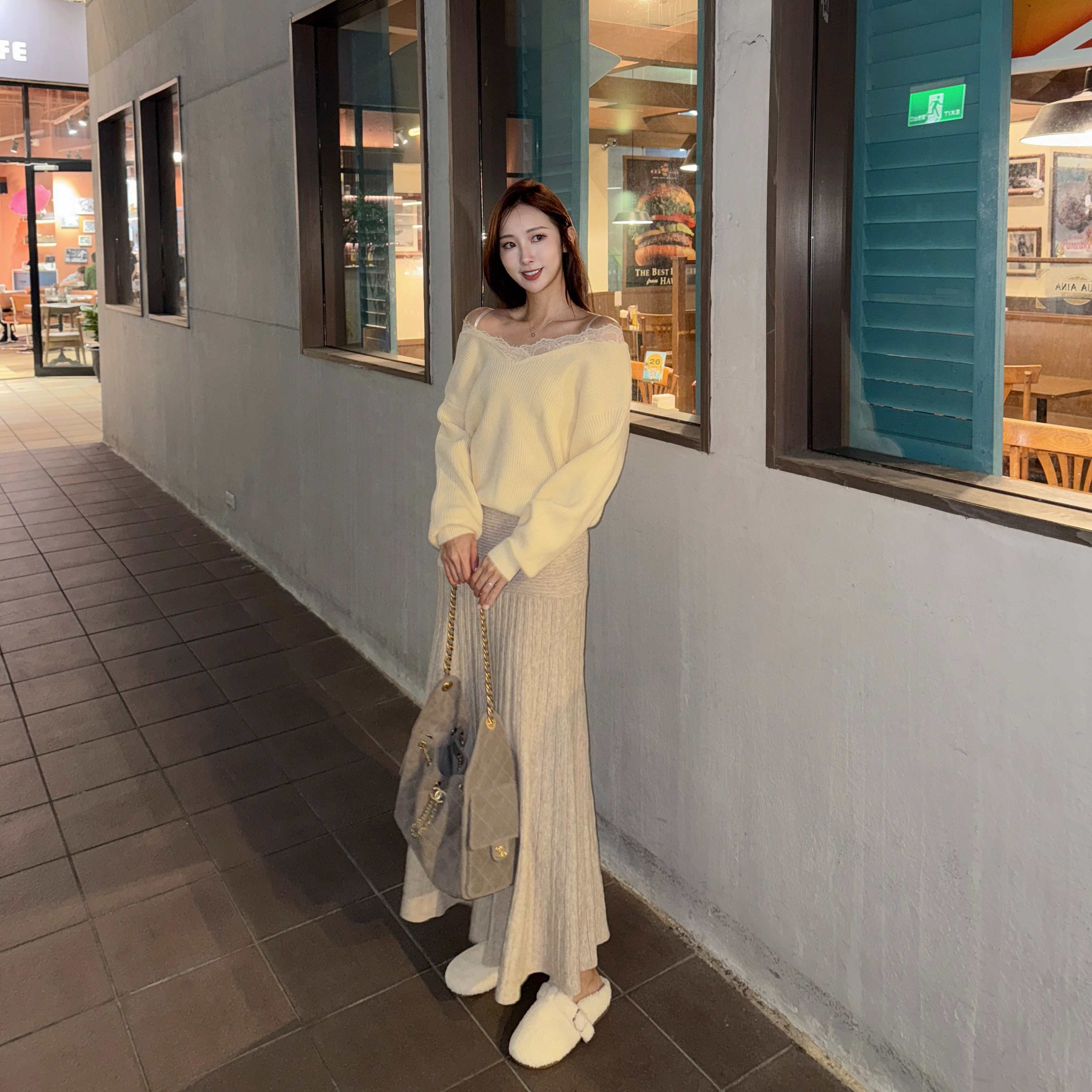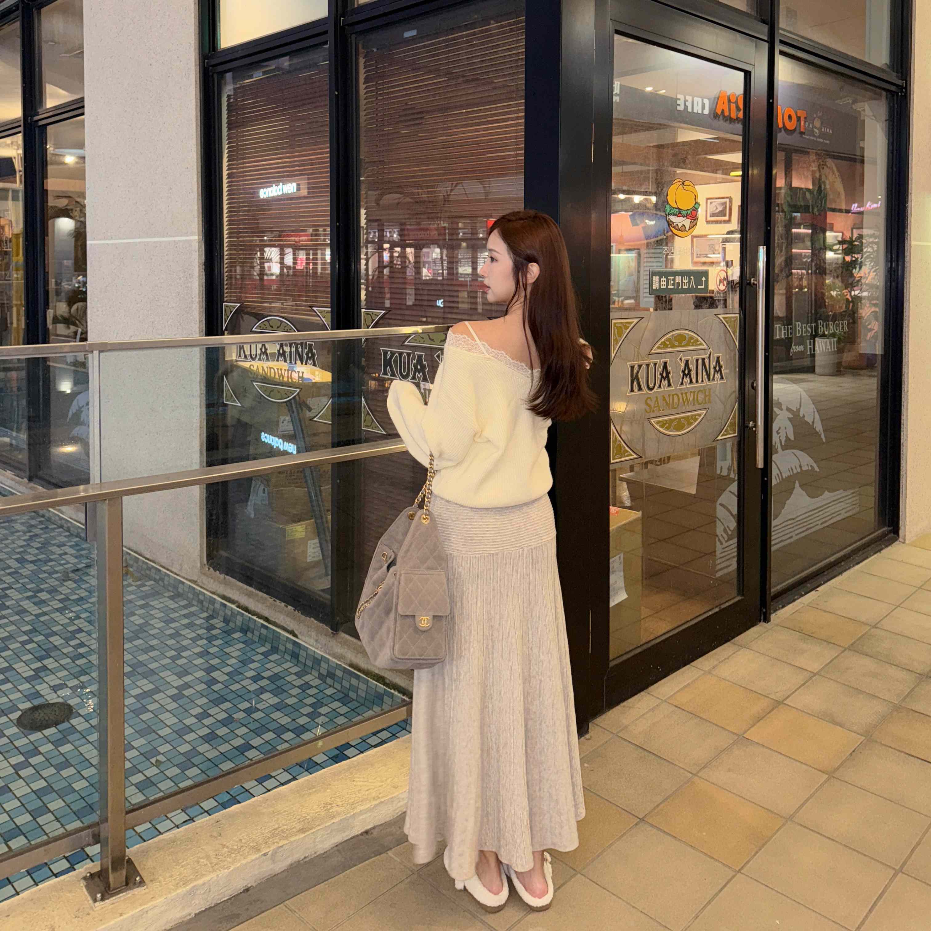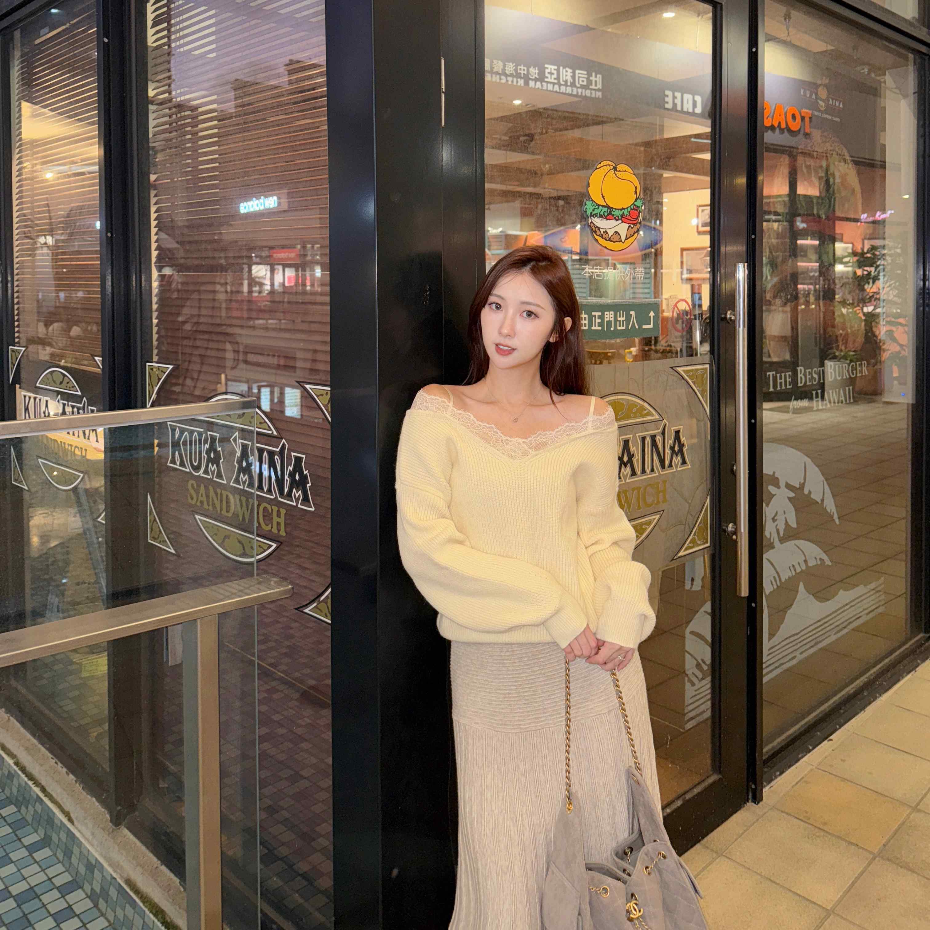 首頁所有商品/All Products外套/OUTER 氣質法式露肩針織毛衣