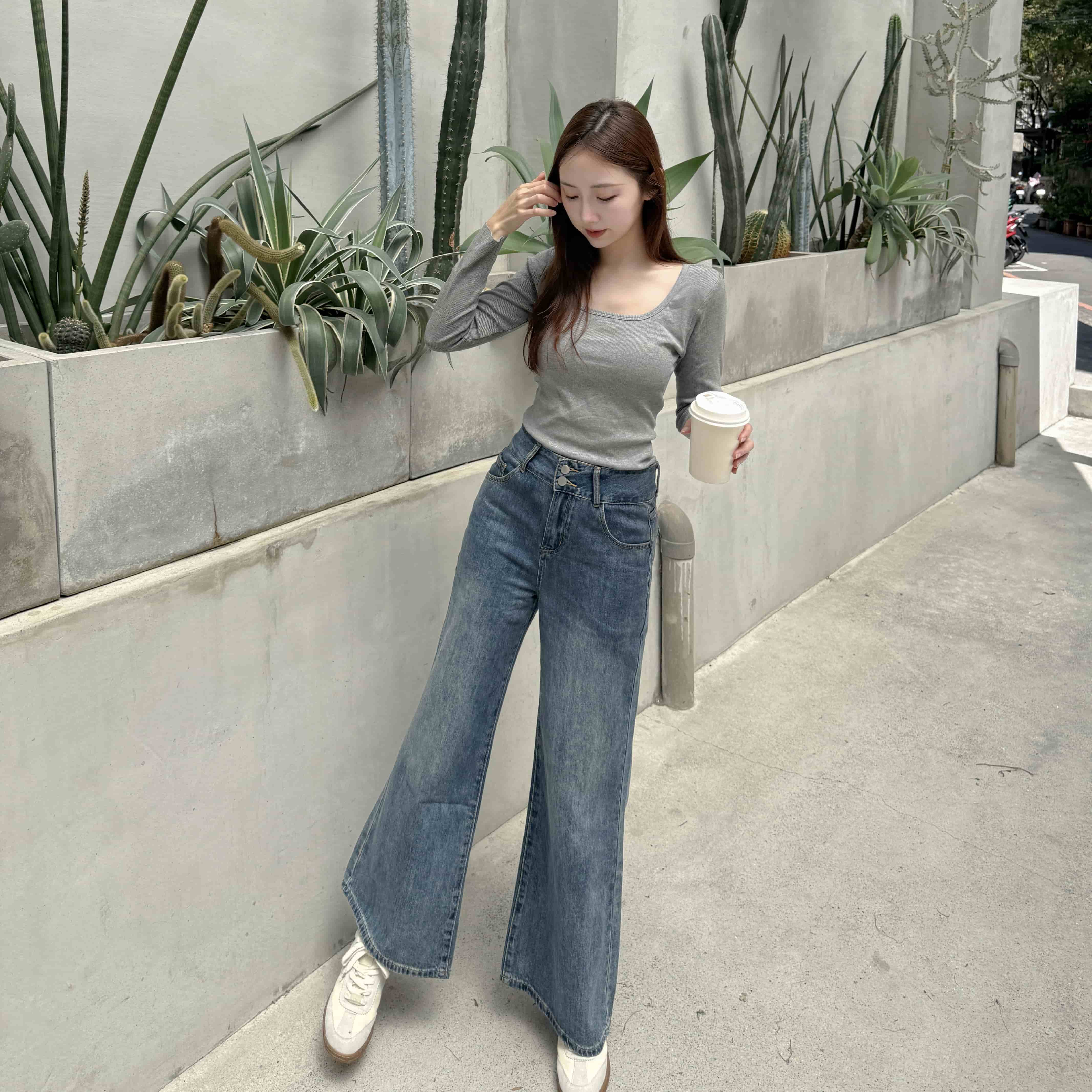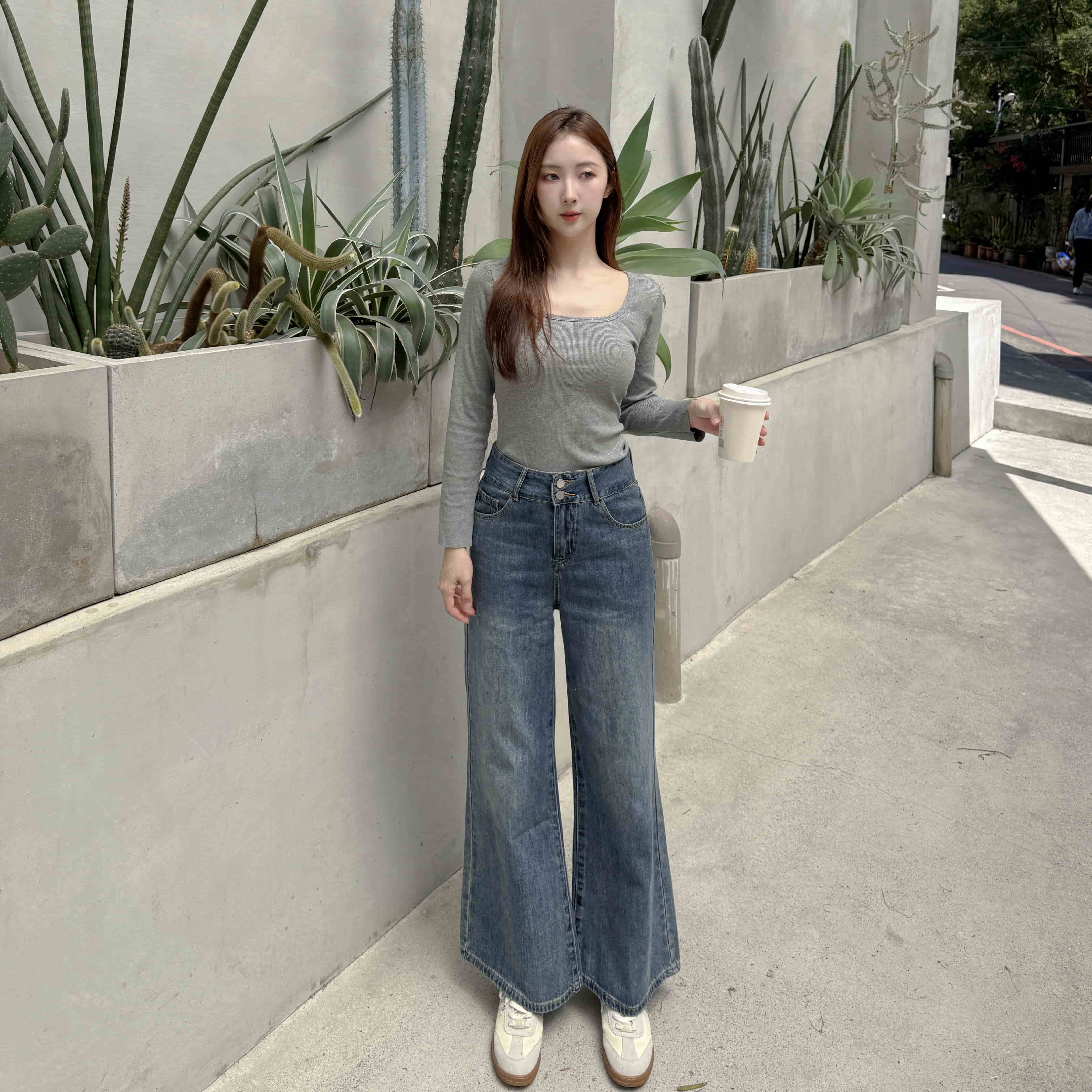 巴黎鐵塔的約定-高彈力微喇叭牛仔褲