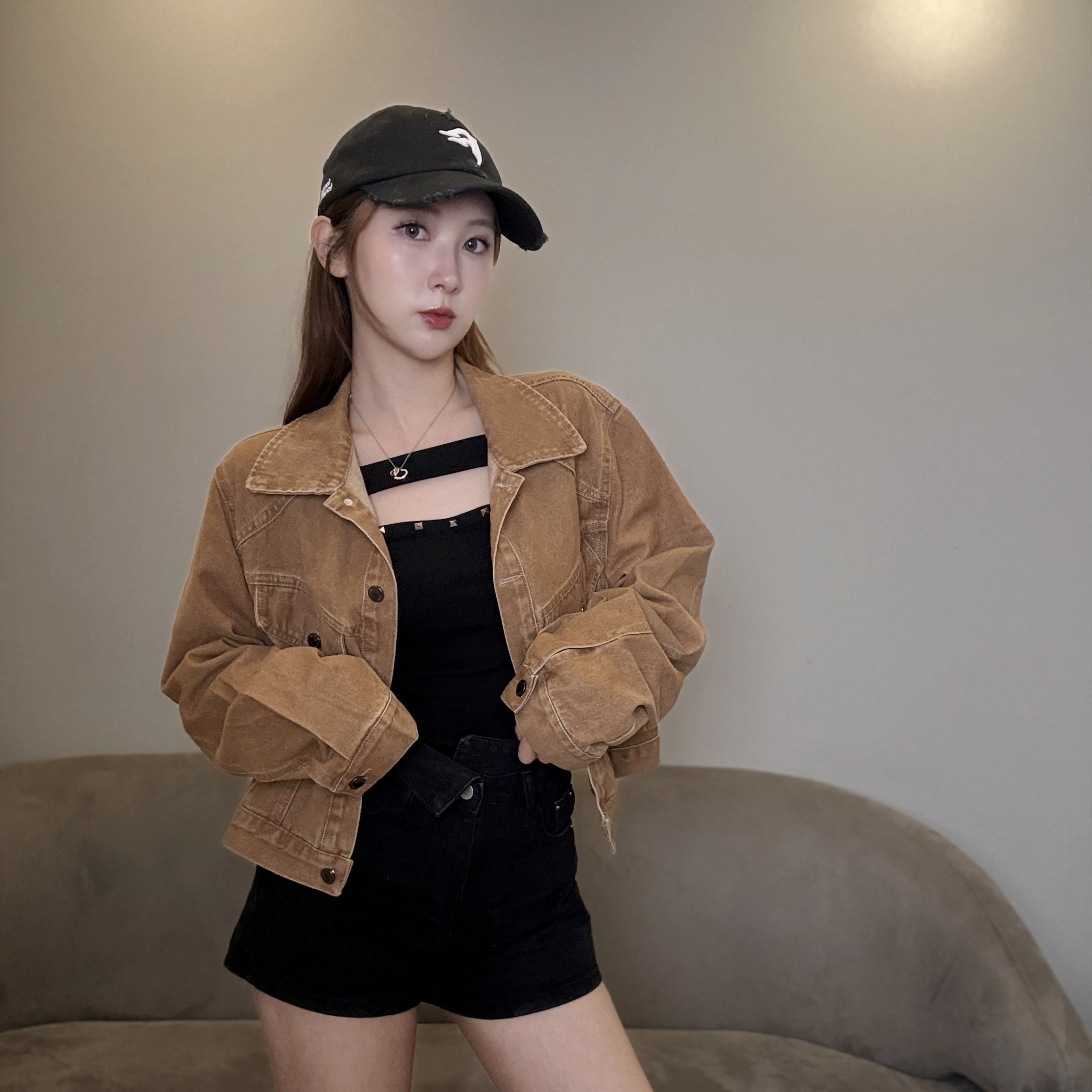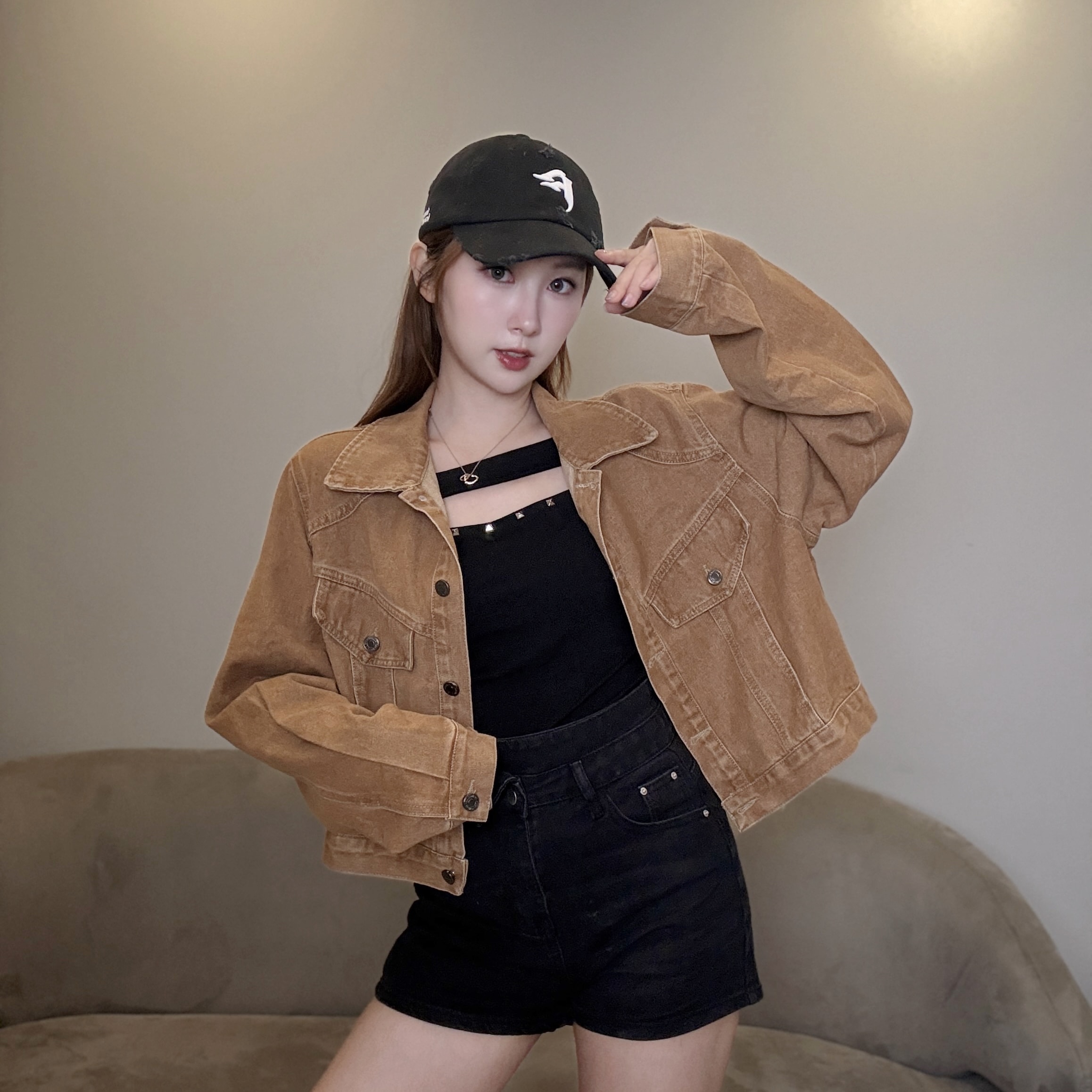首頁所有商品/All Products外套/OUTER 焦糖暮色-質感棕色牛仔外套