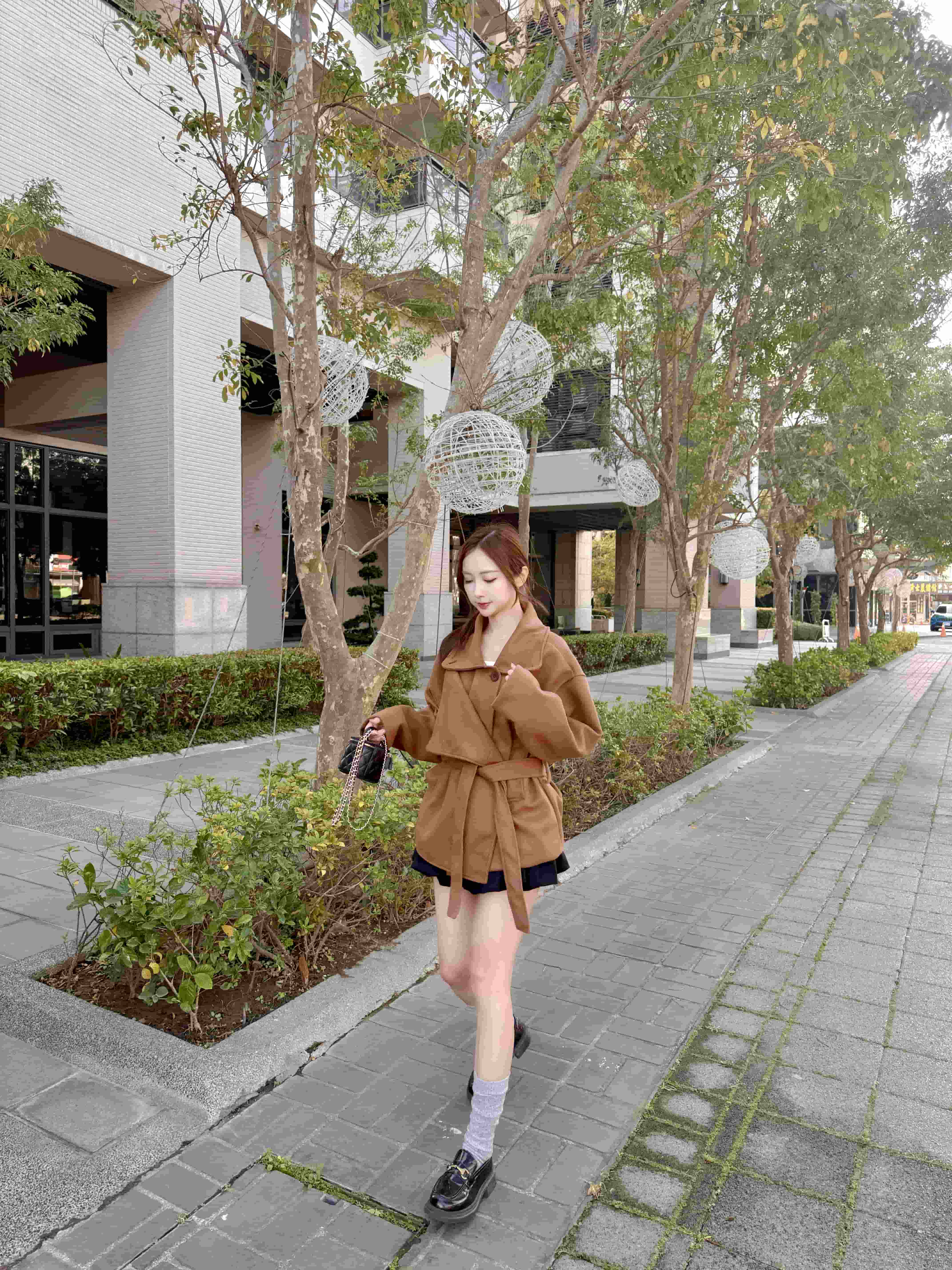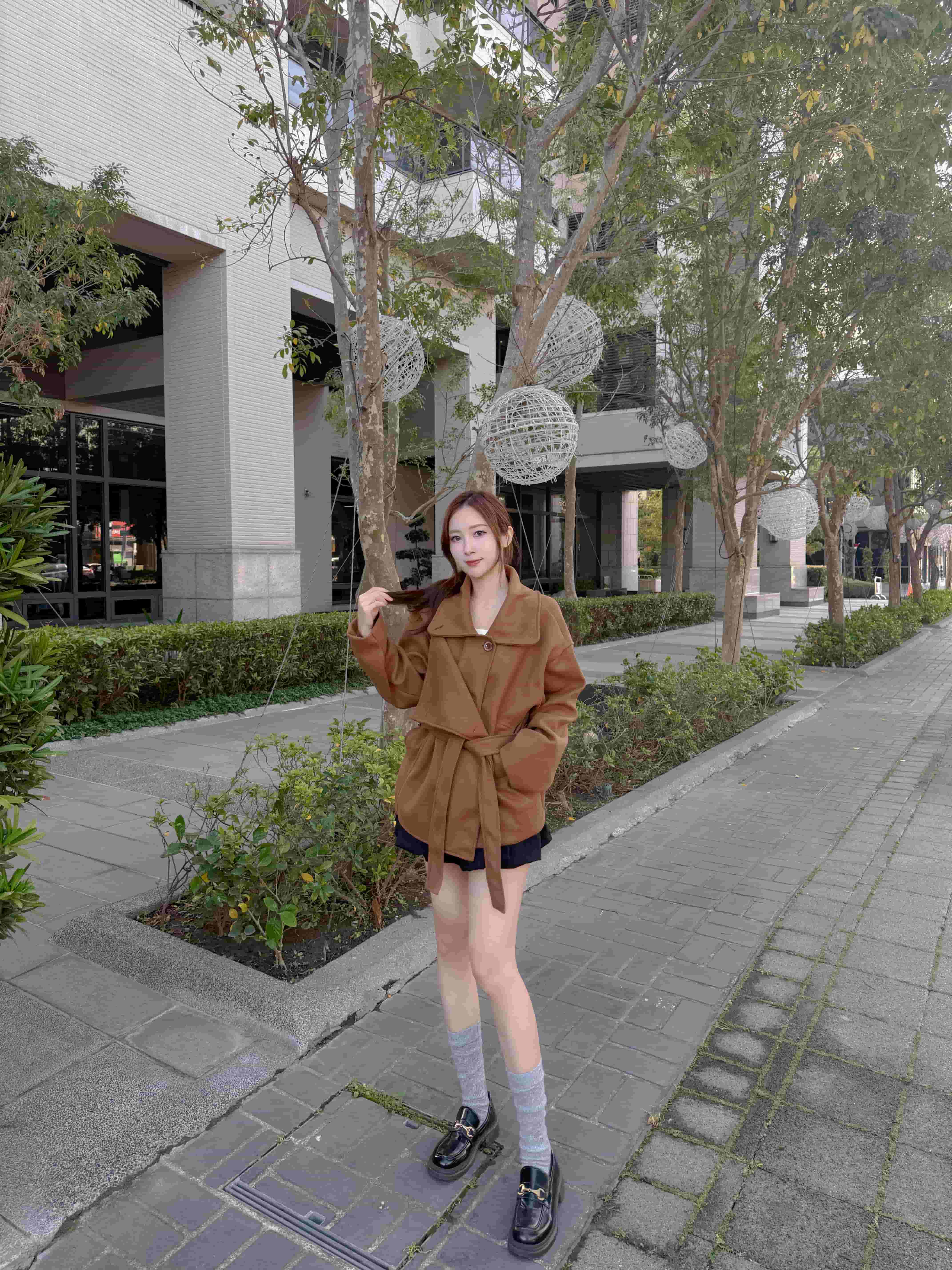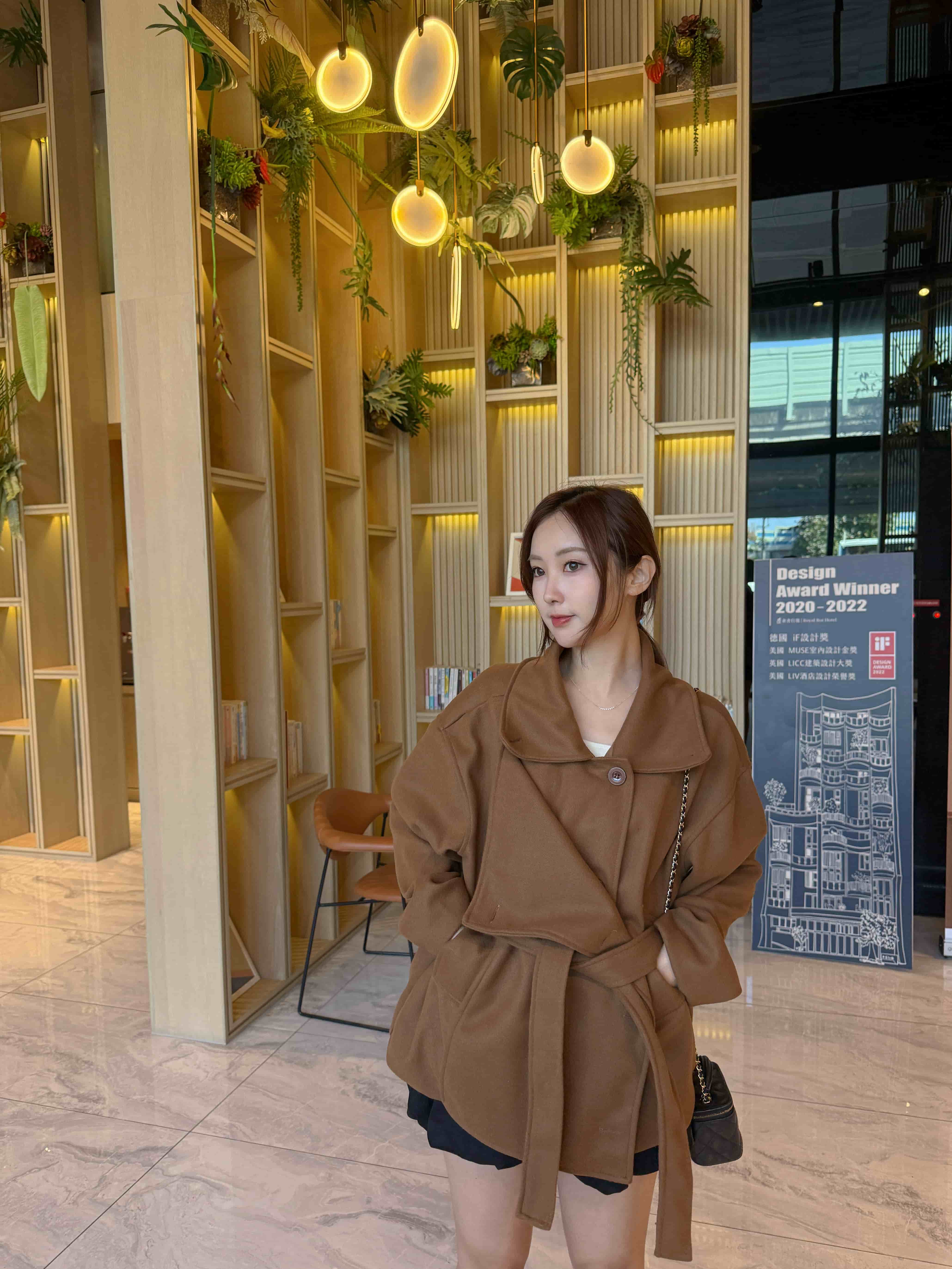 冬日暖棕色韓系溫柔毛呢大衣