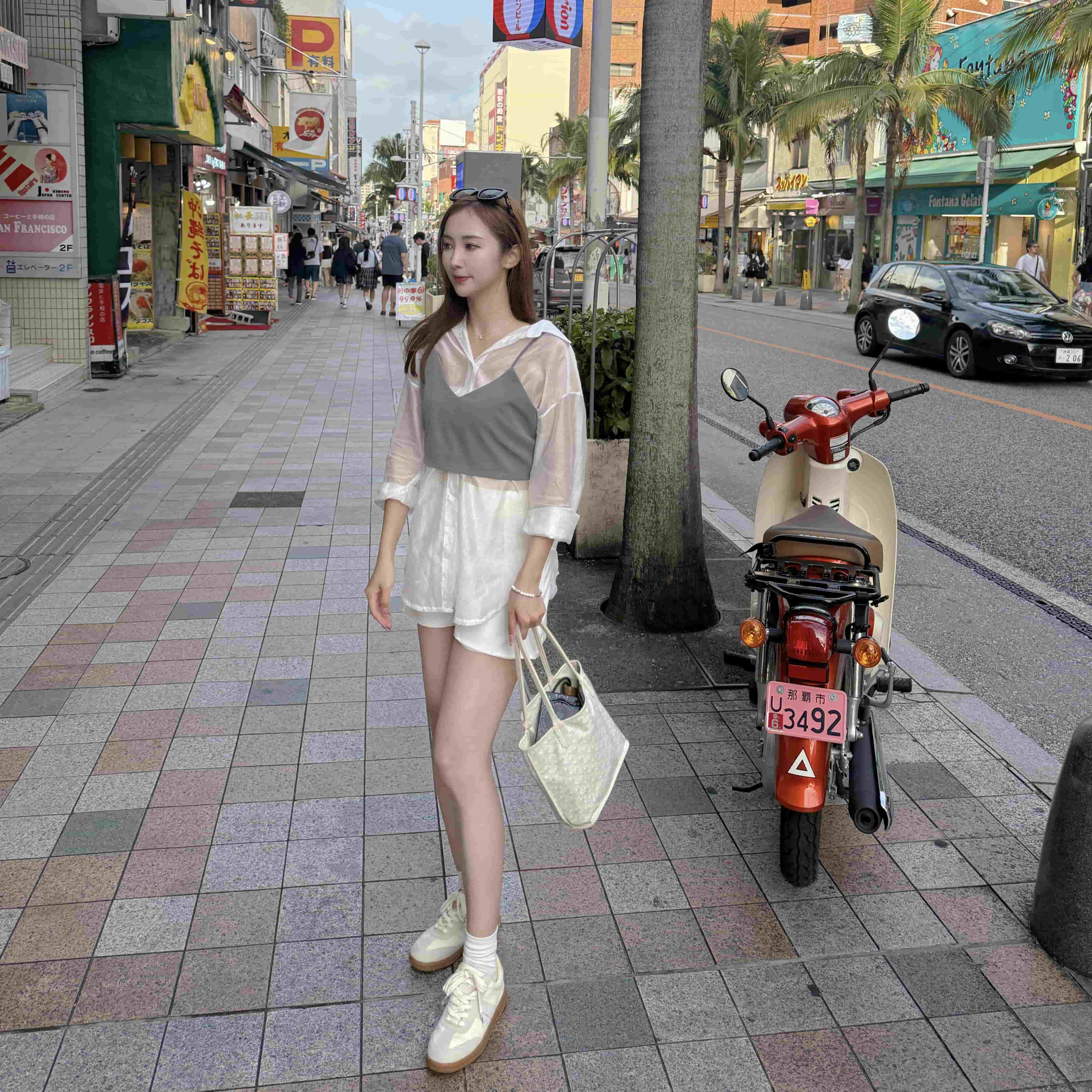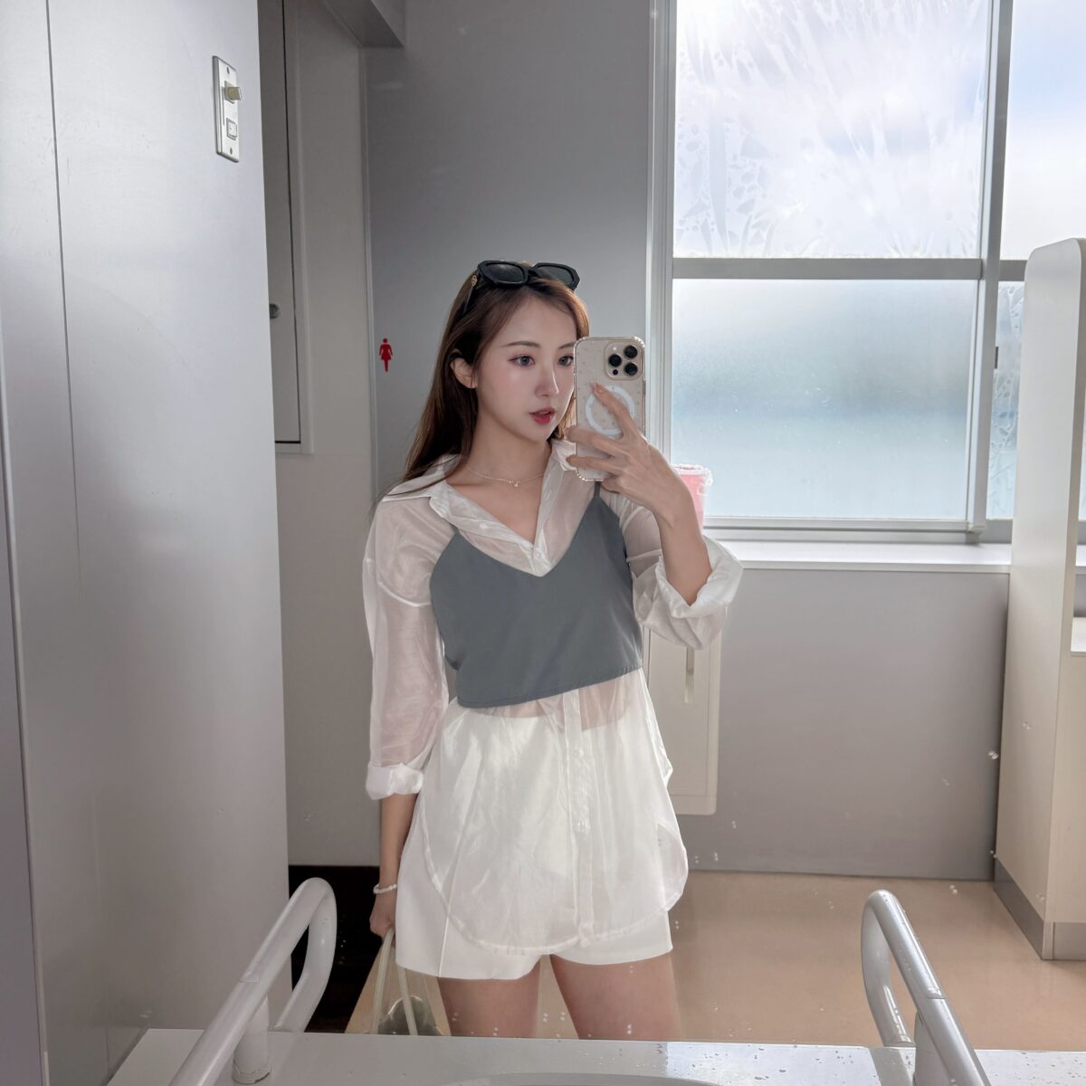 空氣系女孩-氣質綁帶背心+透膚襯衫套裝