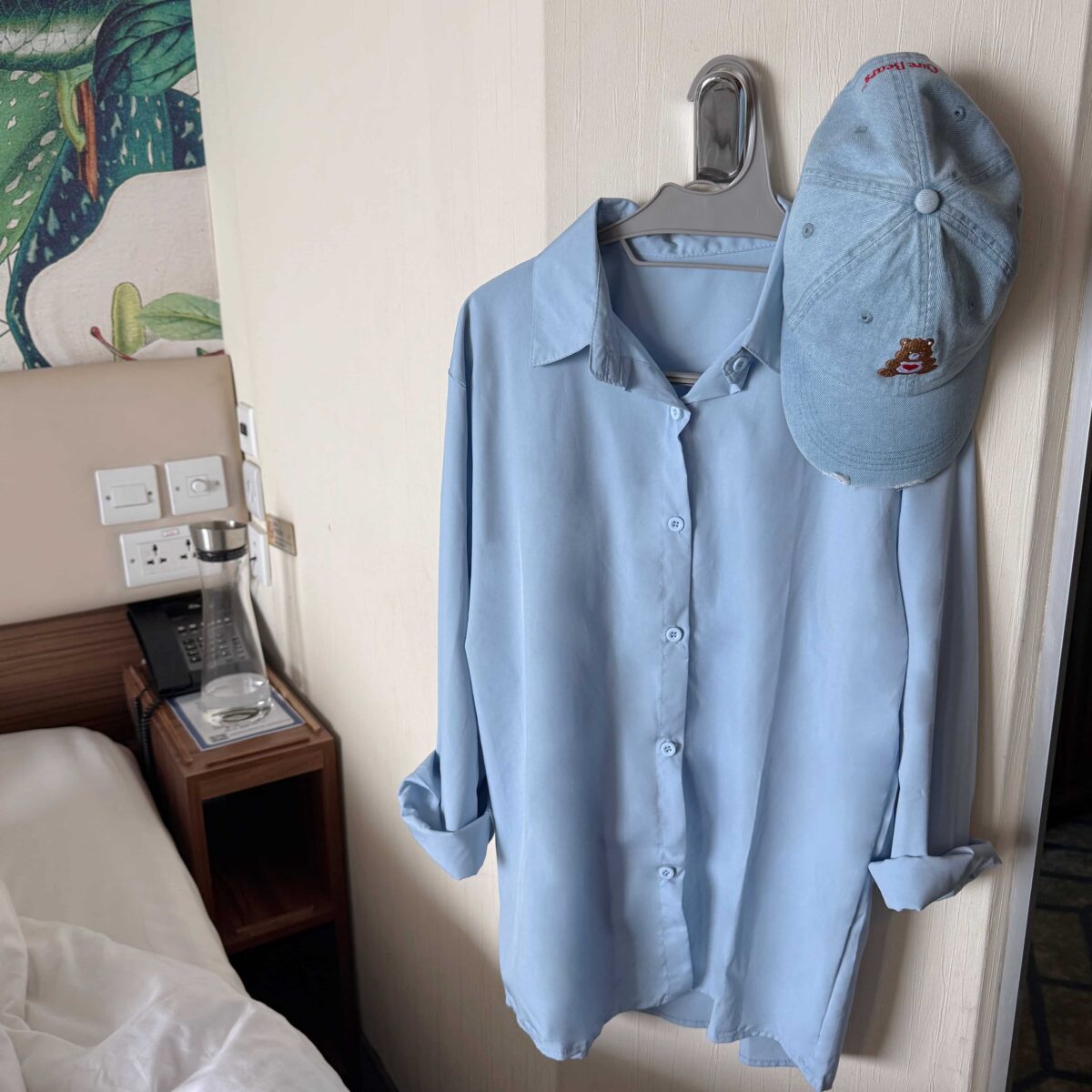 首頁所有商品/All Products上衣/TOP 藍色微光-韓系百搭寬鬆襯衫