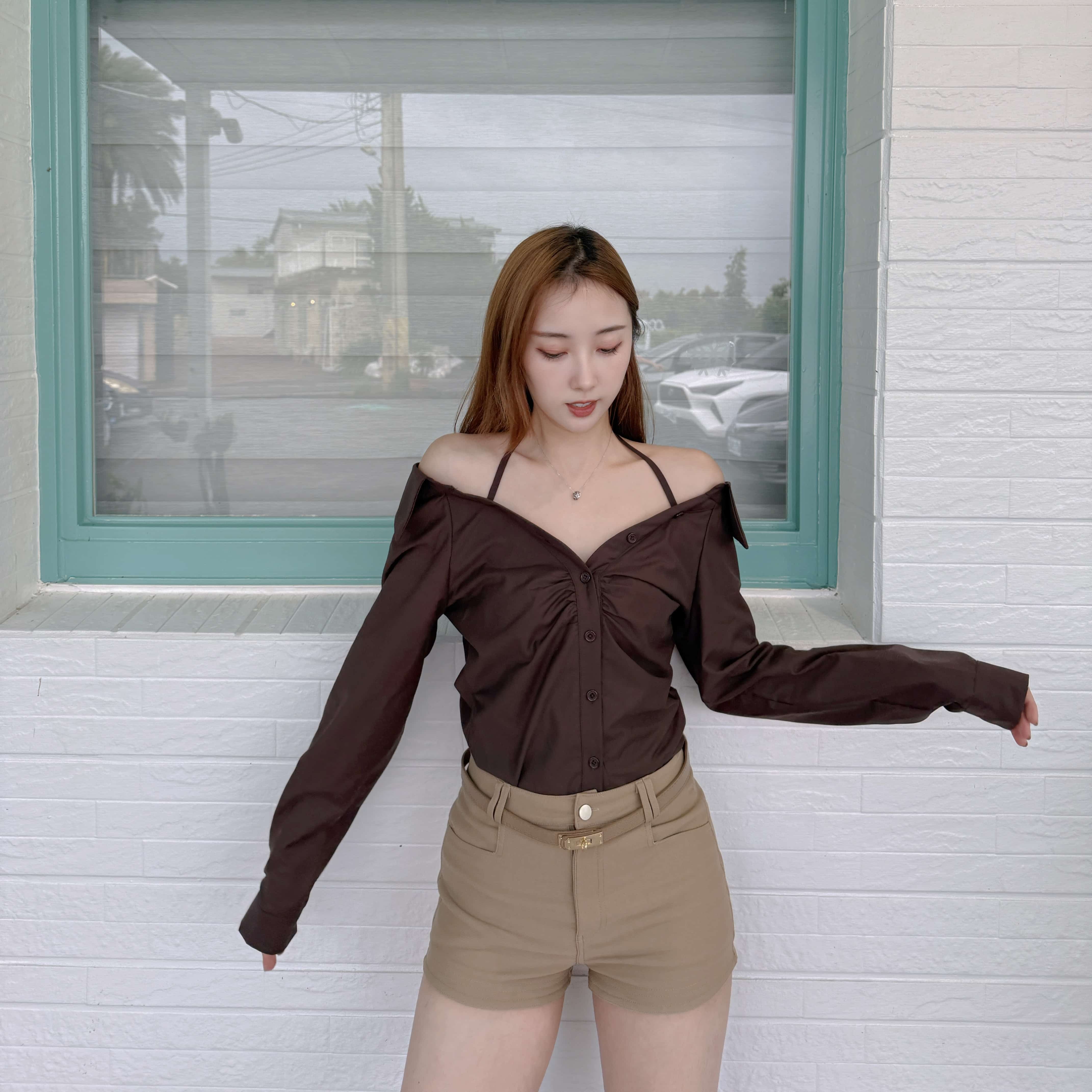 上身自帶腰身的一款秋日襯衫