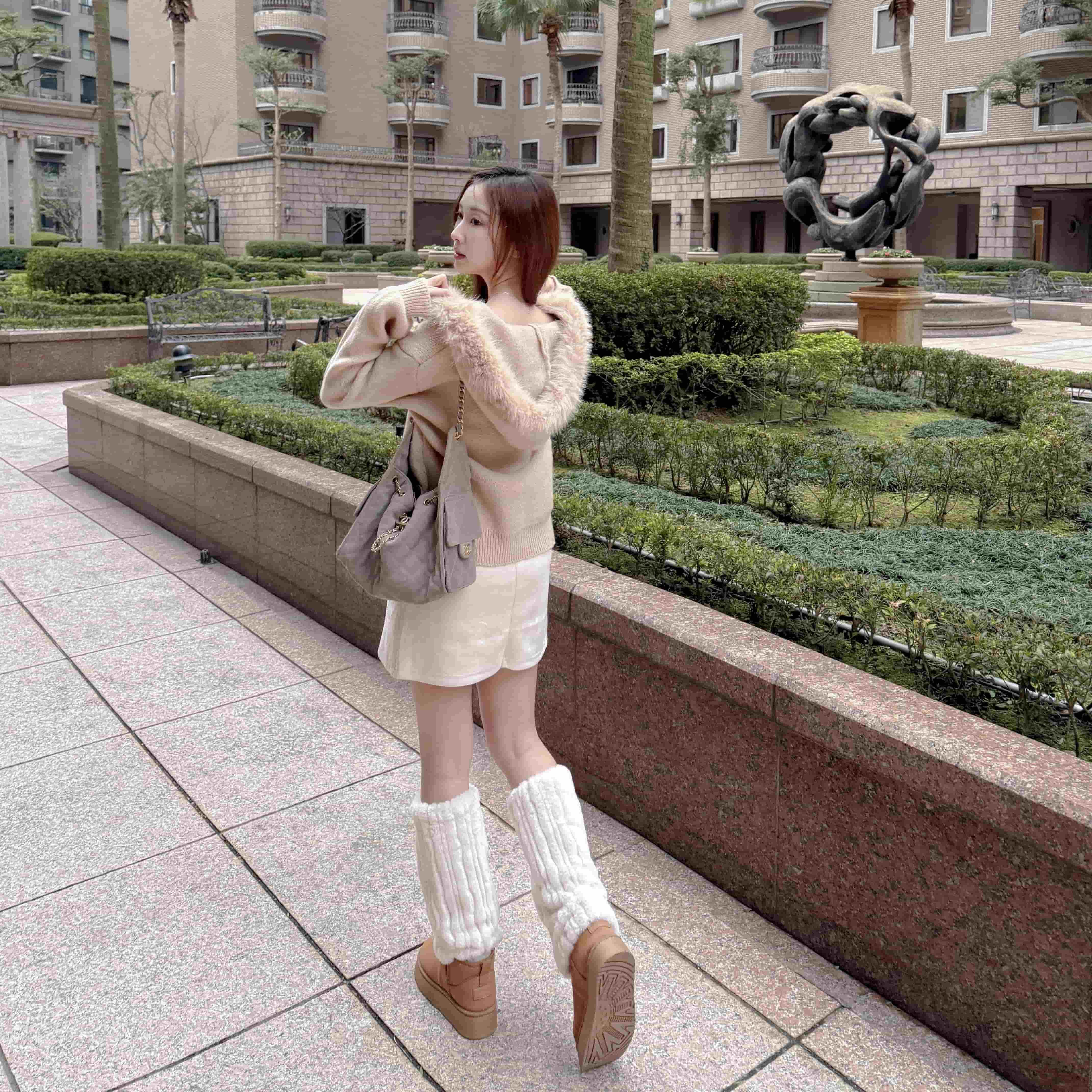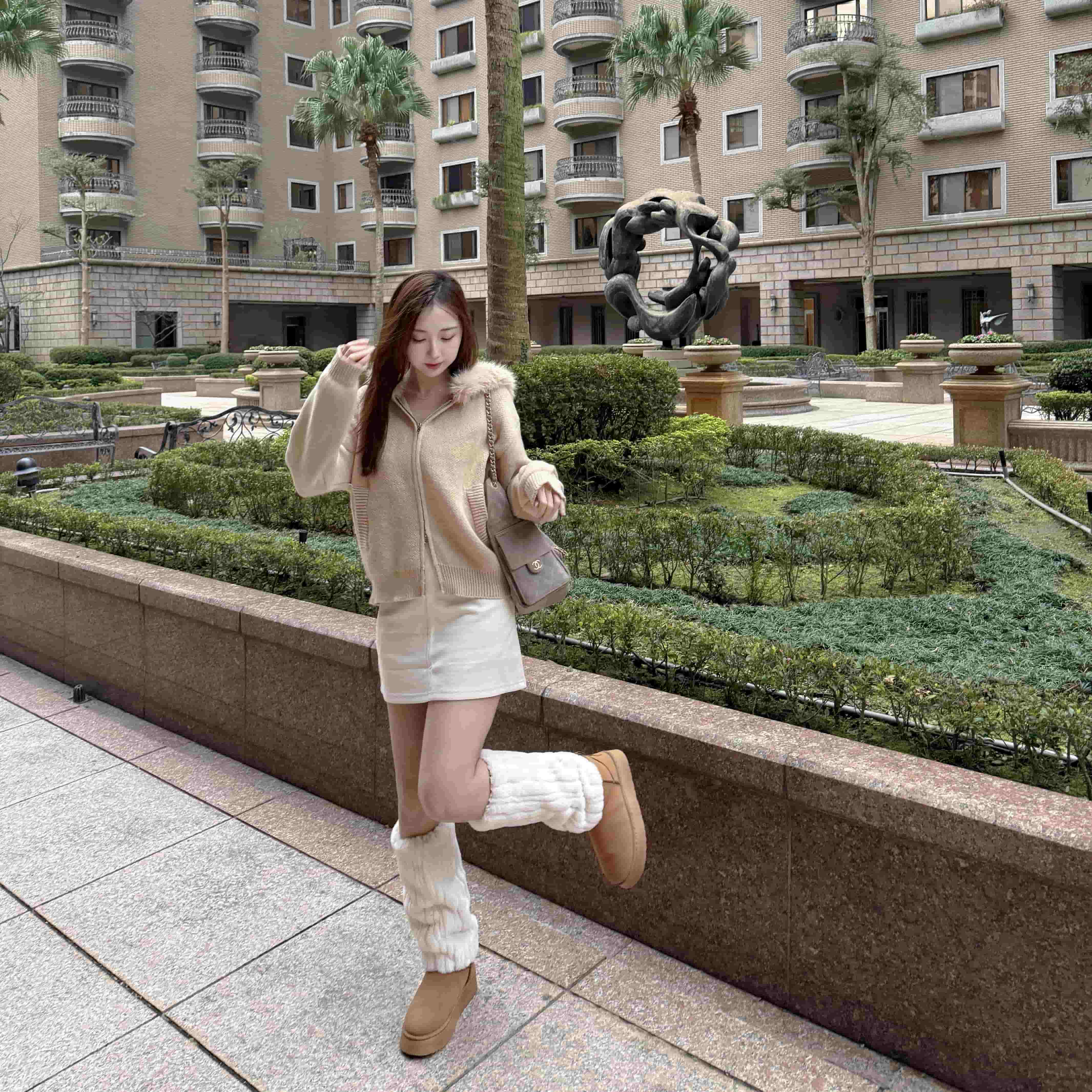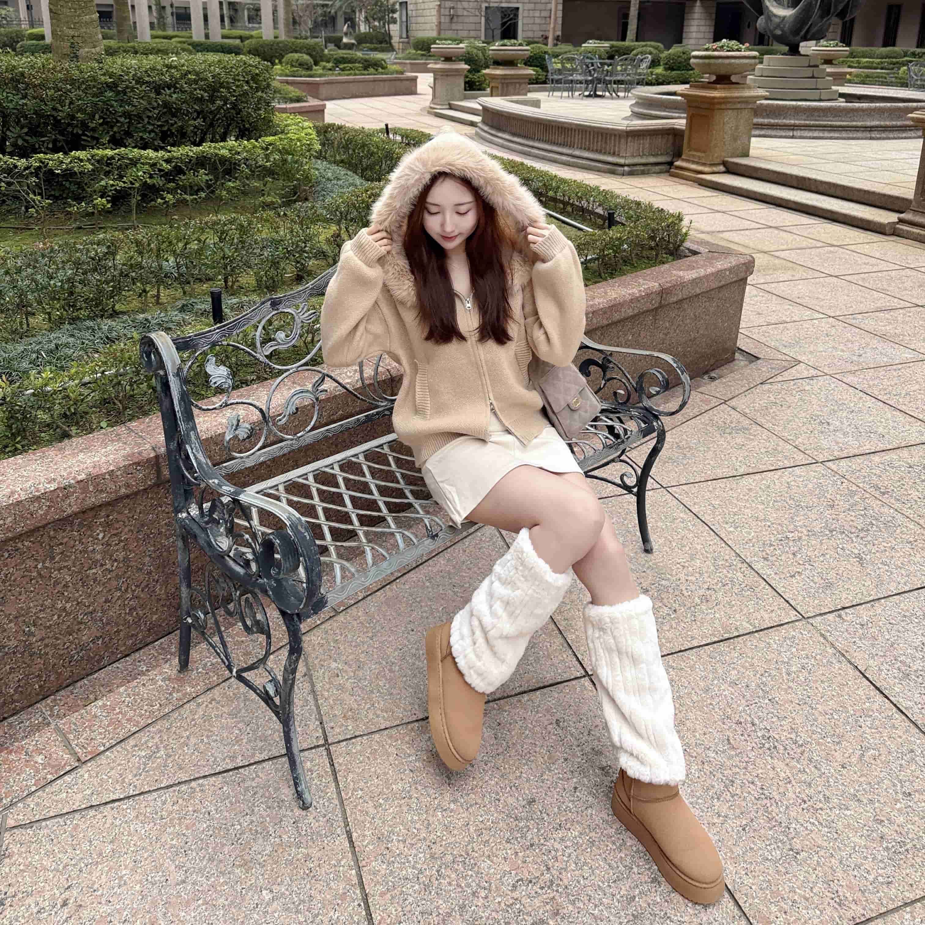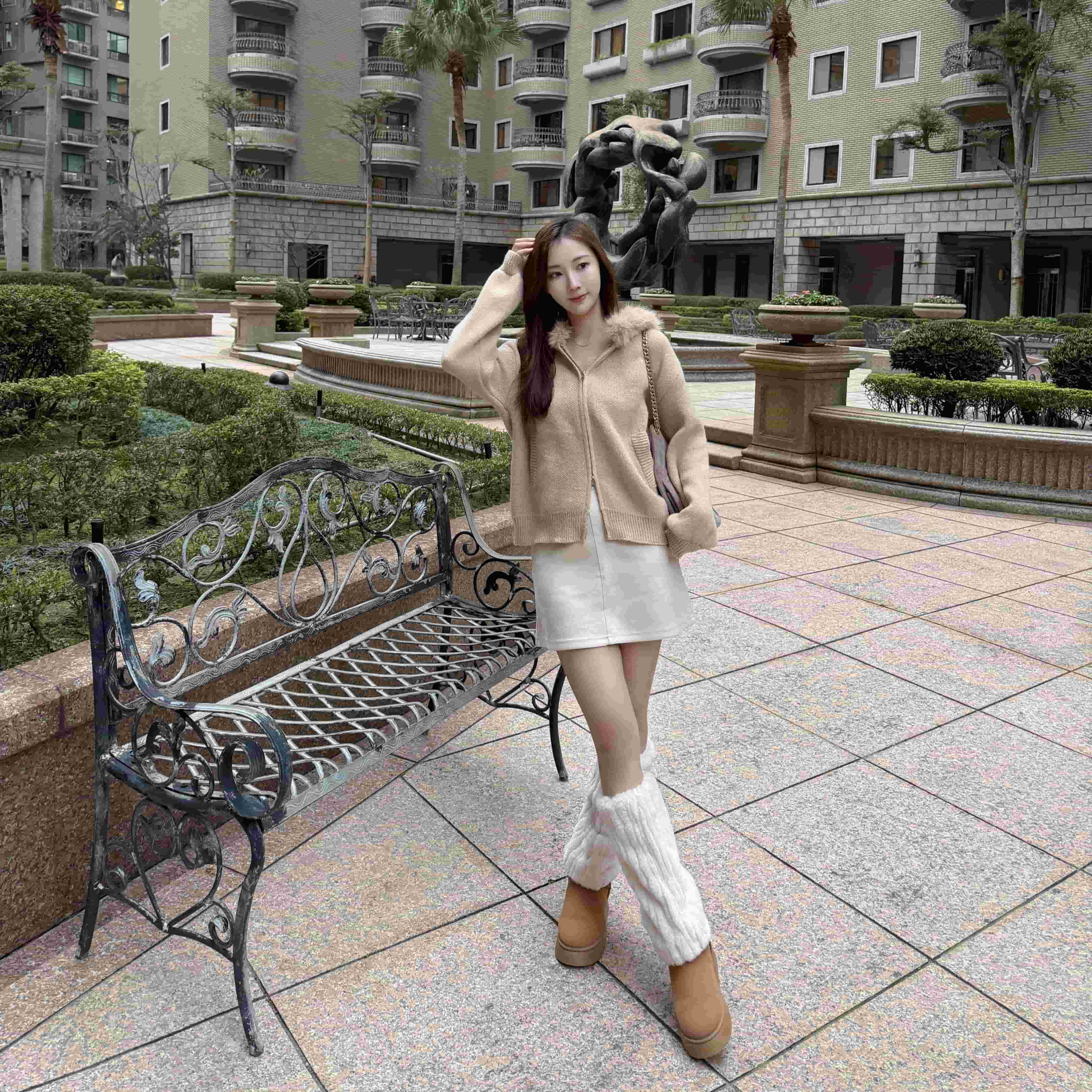 白色戀人-毛毛連帽拉鍊針織毛衣