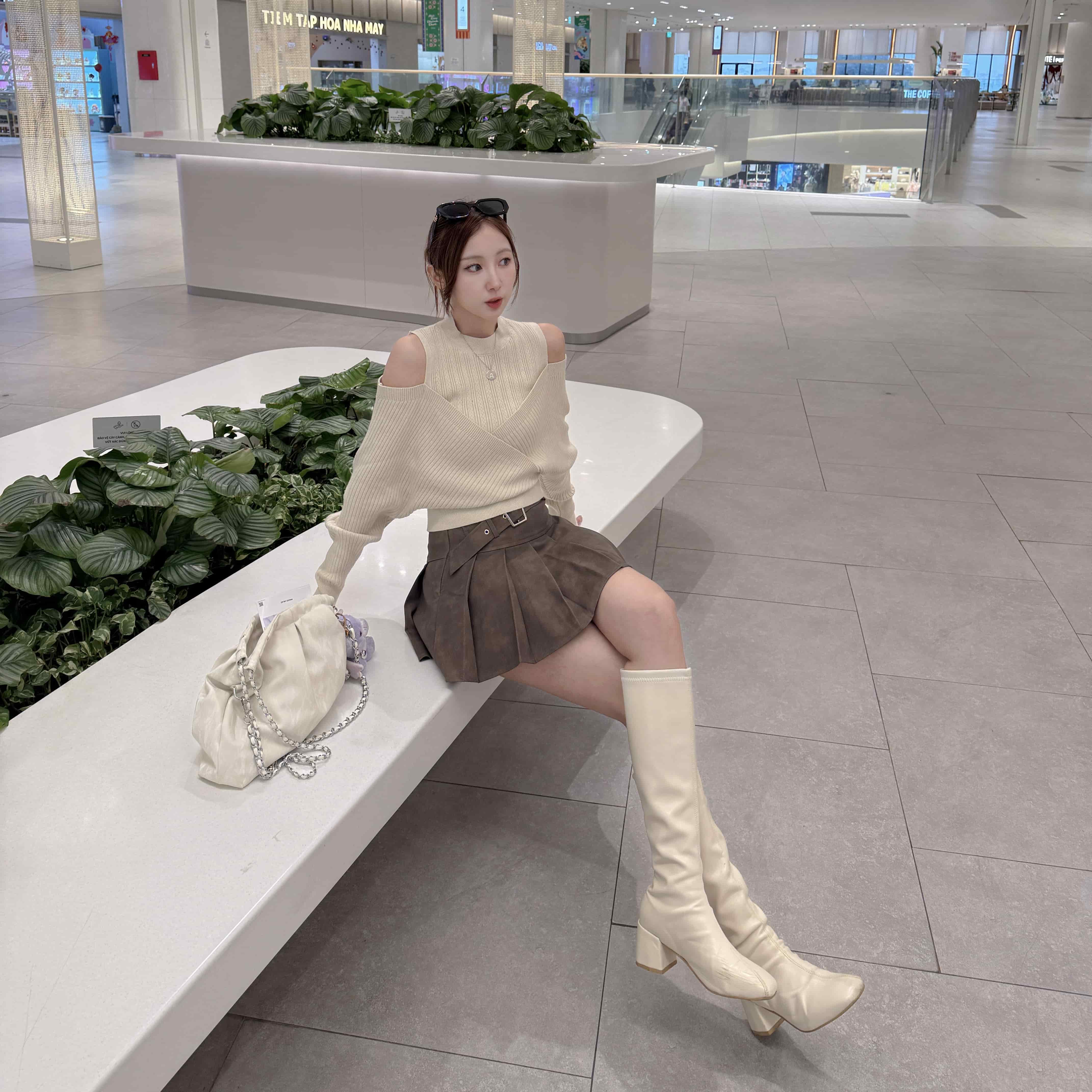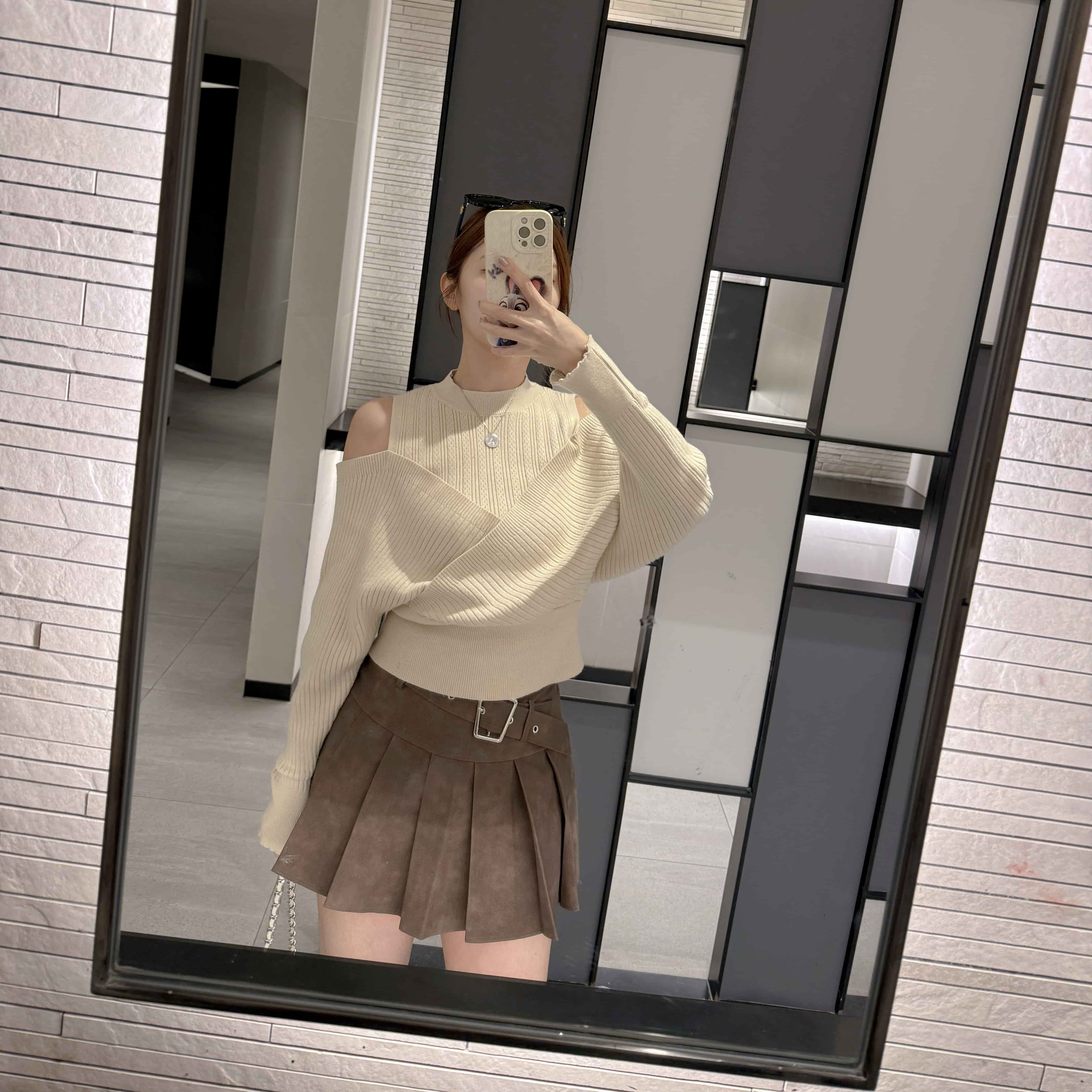 首頁所有商品/All Products上衣/TOP 鏡頭追光-韓系露肩針織毛衣