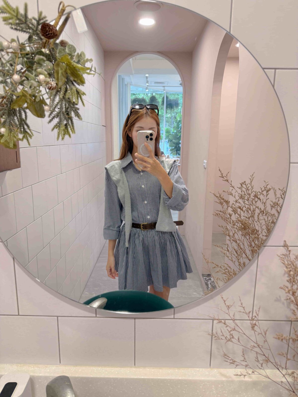 首頁所有商品/All Products套裝/SET 韓系格紋襯衫連身裙+披肩套裝(附皮帶)
