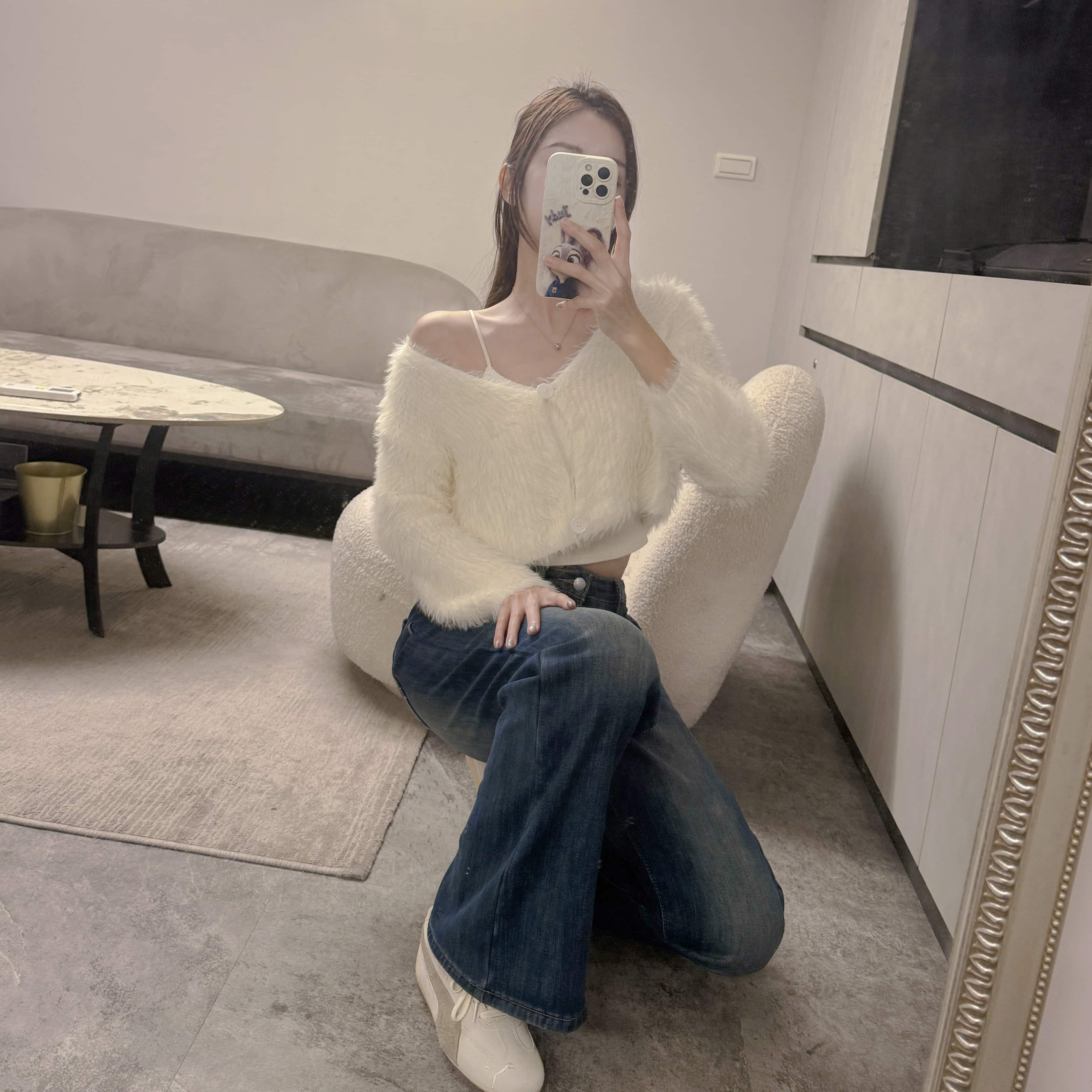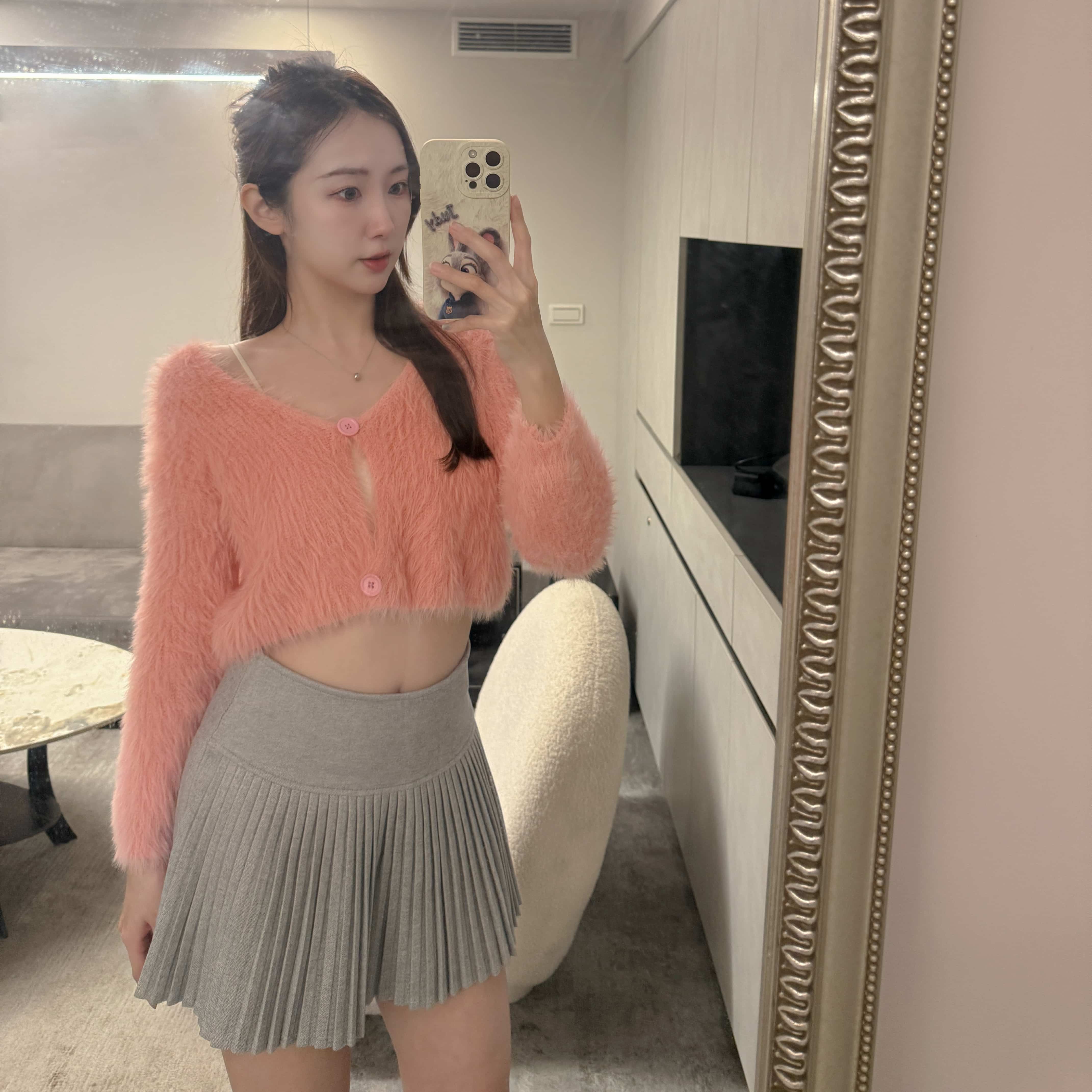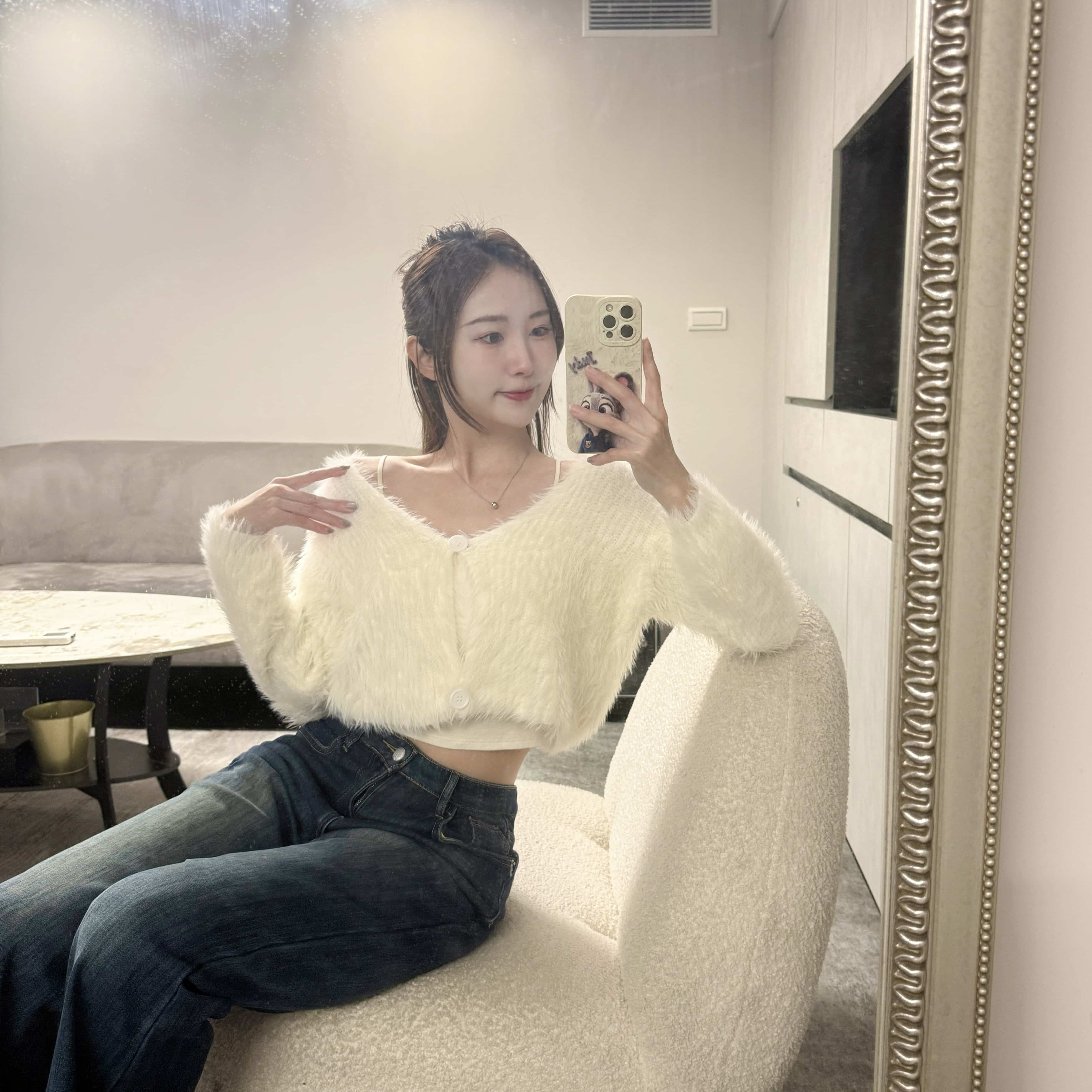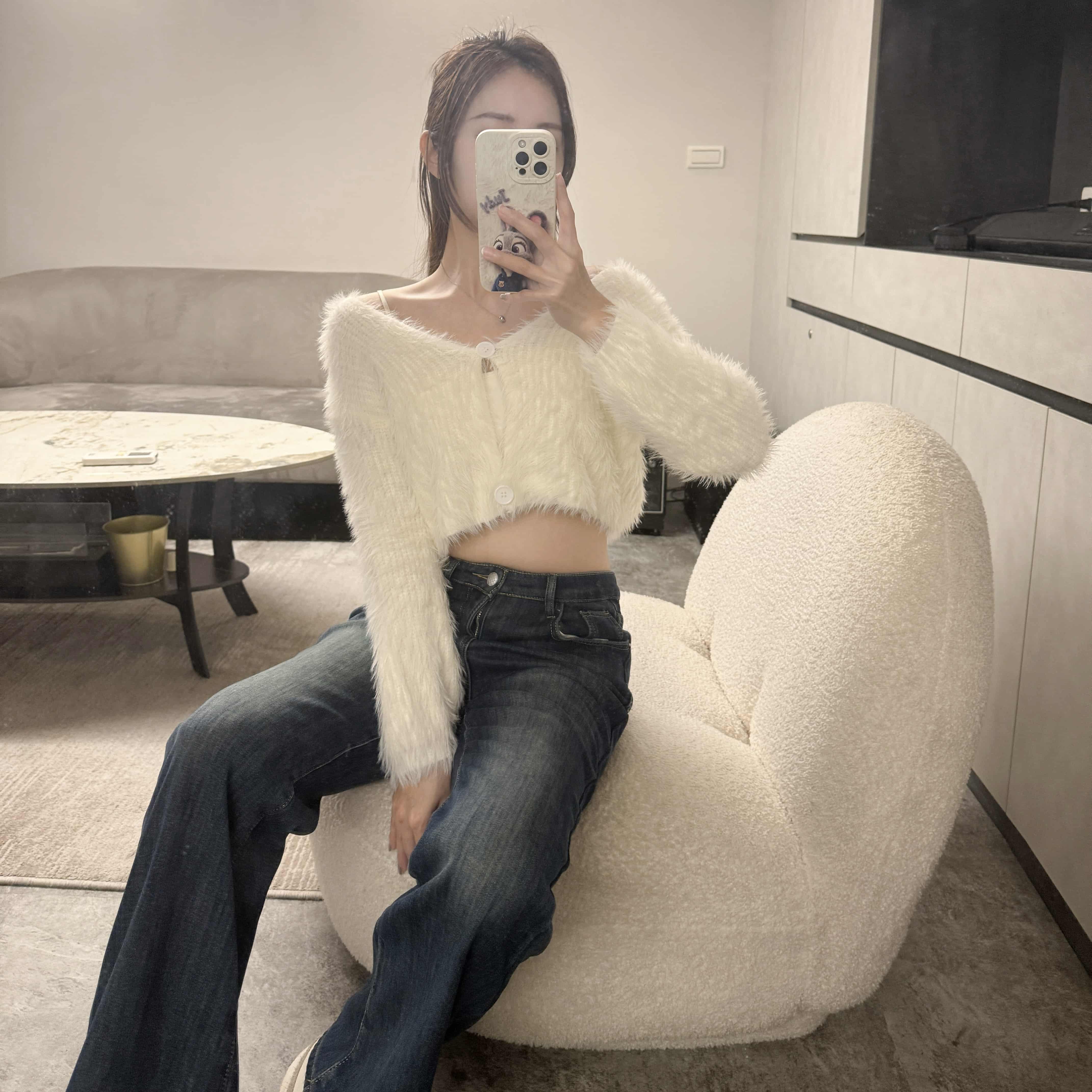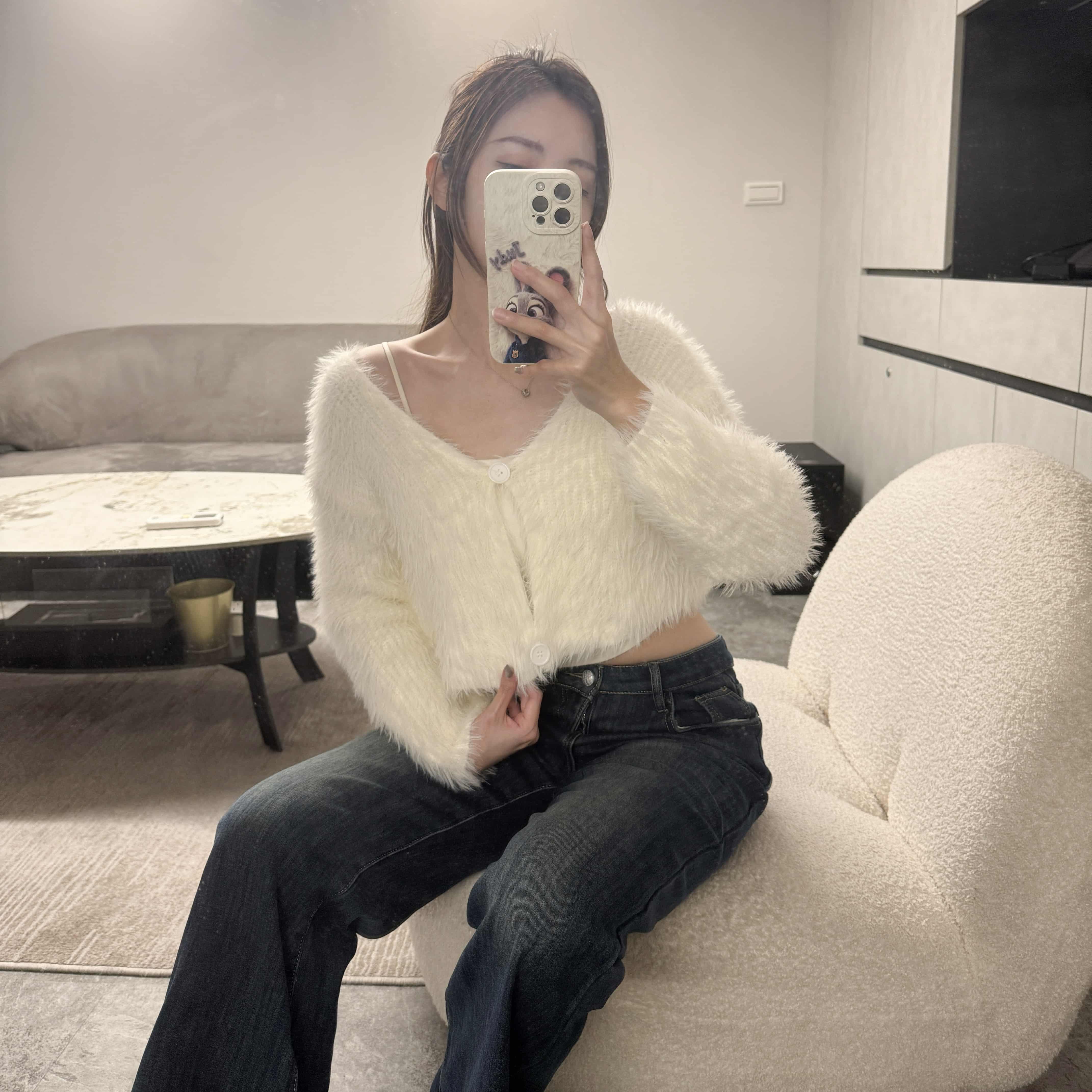冬日純欲甜辣風 短版毛毛兩釦上衣